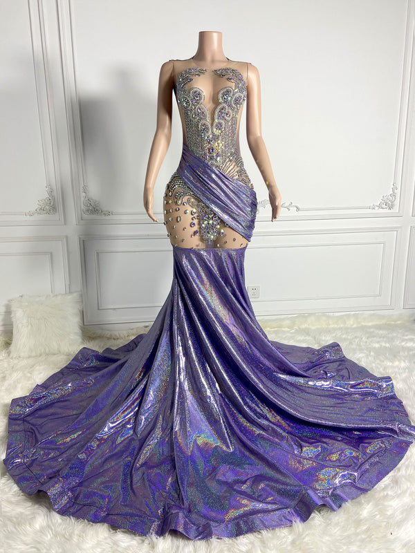 Sparkly Crystal Rhombi Hollowout Evening Gown