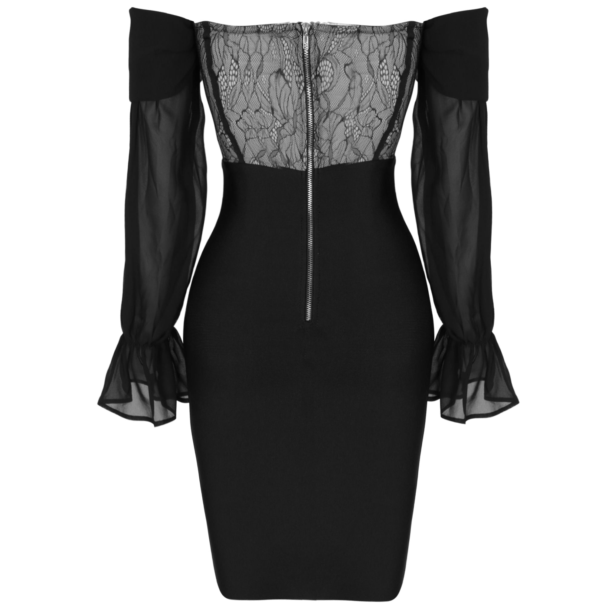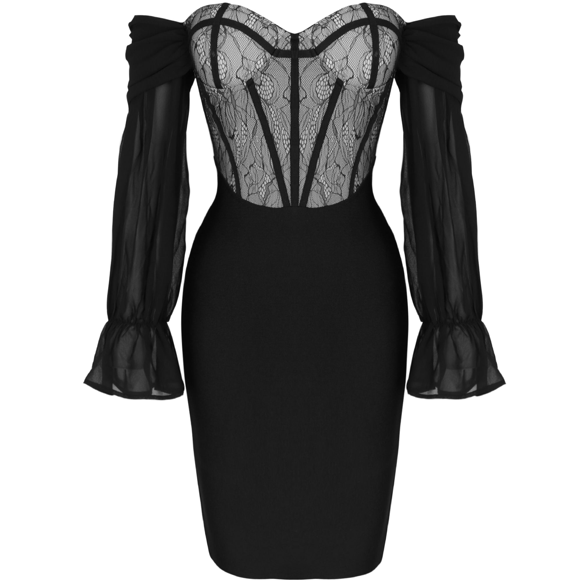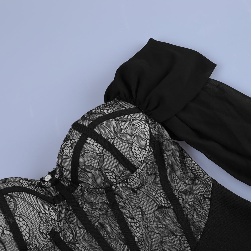 Mini robe bandage en dentelle à manches longues et épaules dénudées PP21104