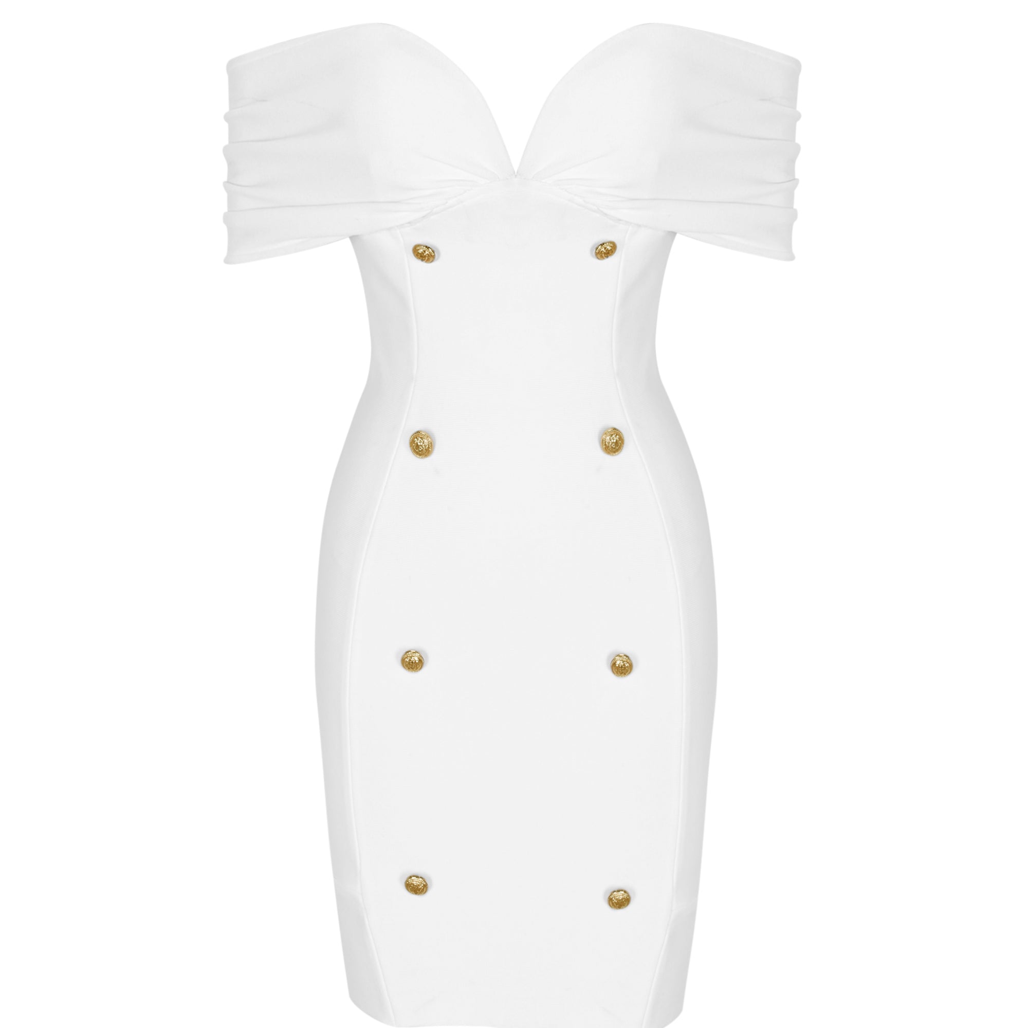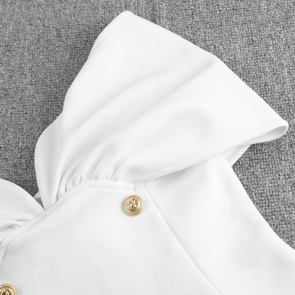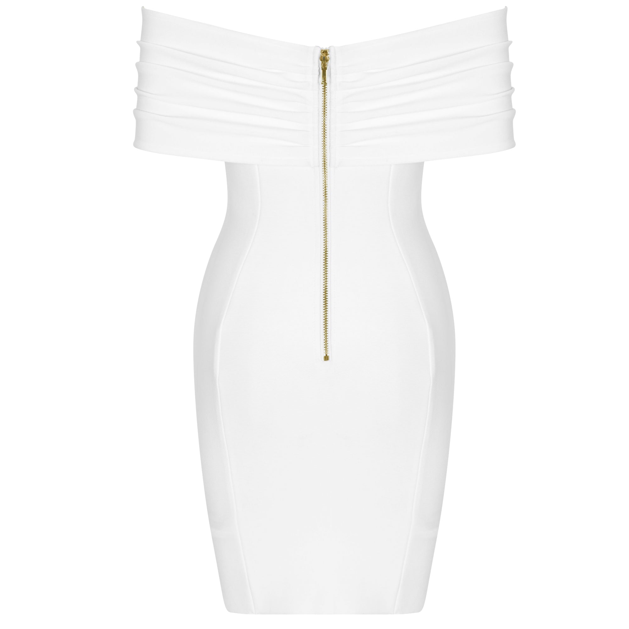 Mini robe bandage froissée à manches courtes et épaules dénudées PF21107