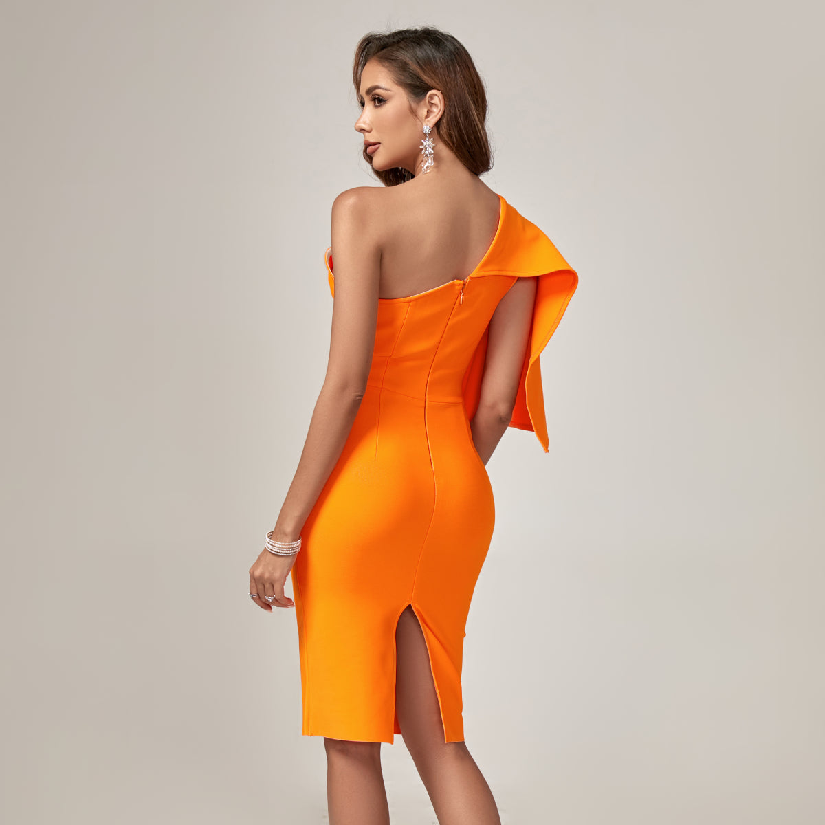 Robe bandage à une épaule à volants