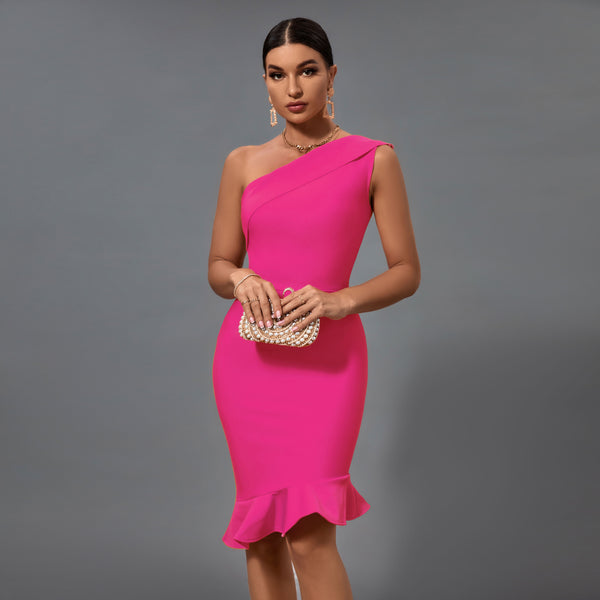 Robe moulante mi-longue à chaîne sans manches à une épaule