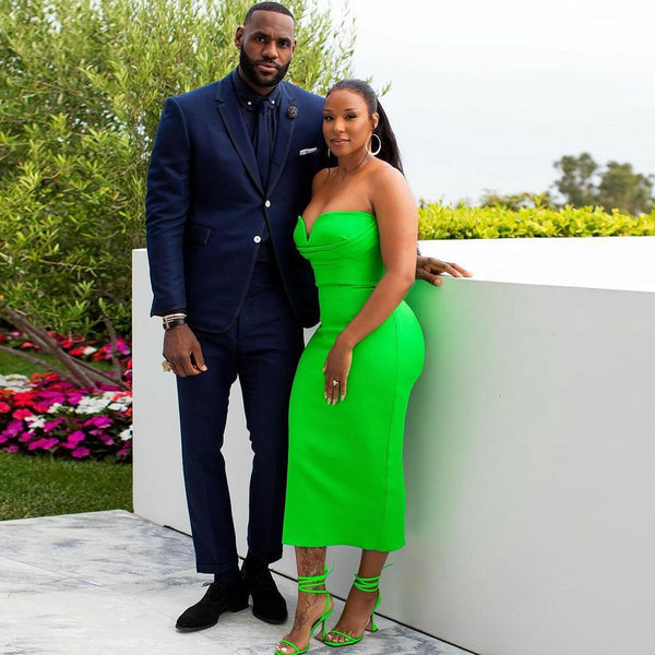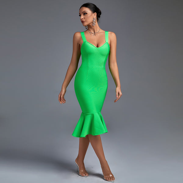 Robe bandage mi-longue à bretelles et chaîne de forage