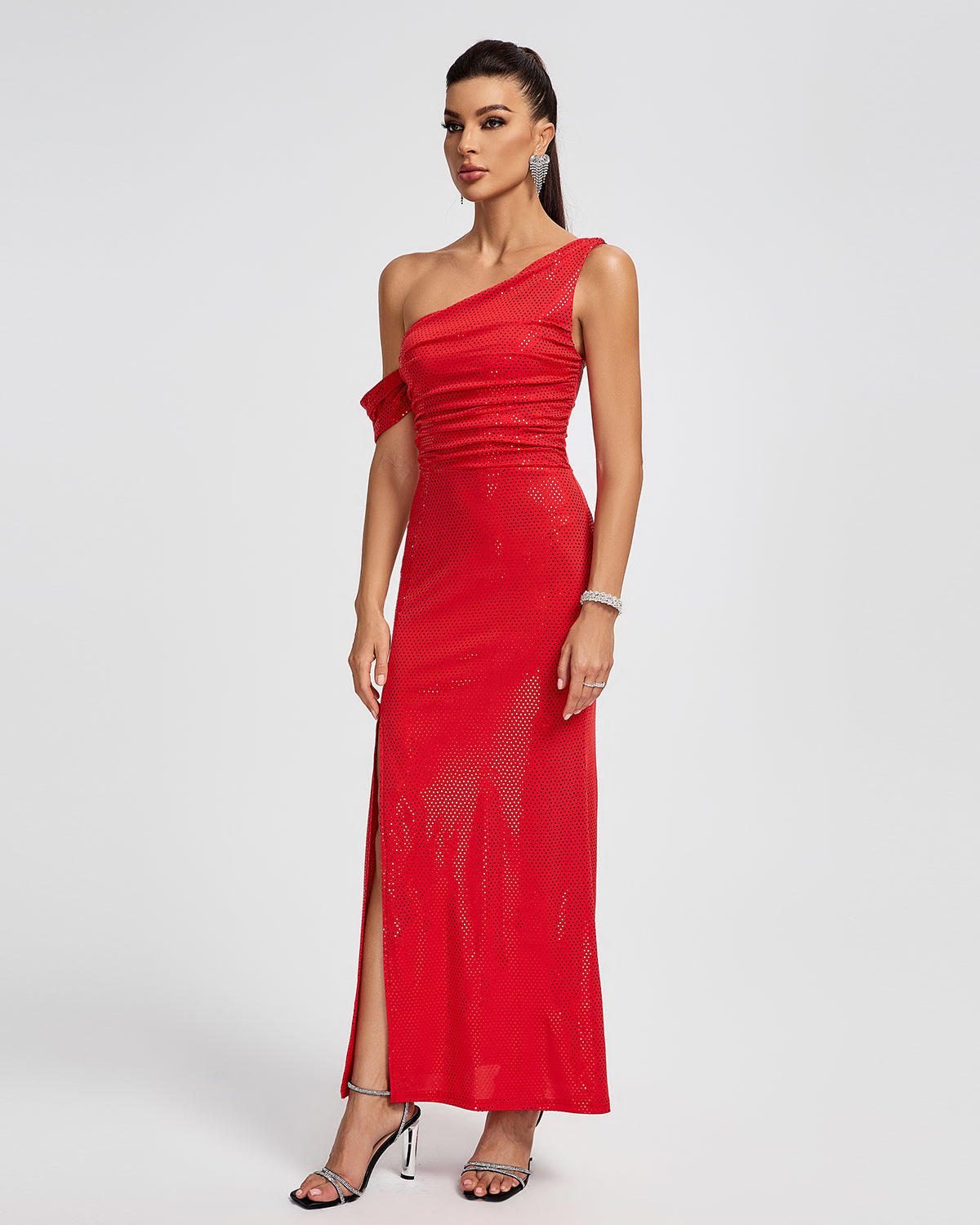 Shimmer and shine in this Sequin Embellished High Slit Maxi Dress. With its delicate sequin detailing and daring high slit, this dress is perfect for a night out. Turn heads and make a statement in this show stopping piece. Warning: may cause serious sparkle envy.