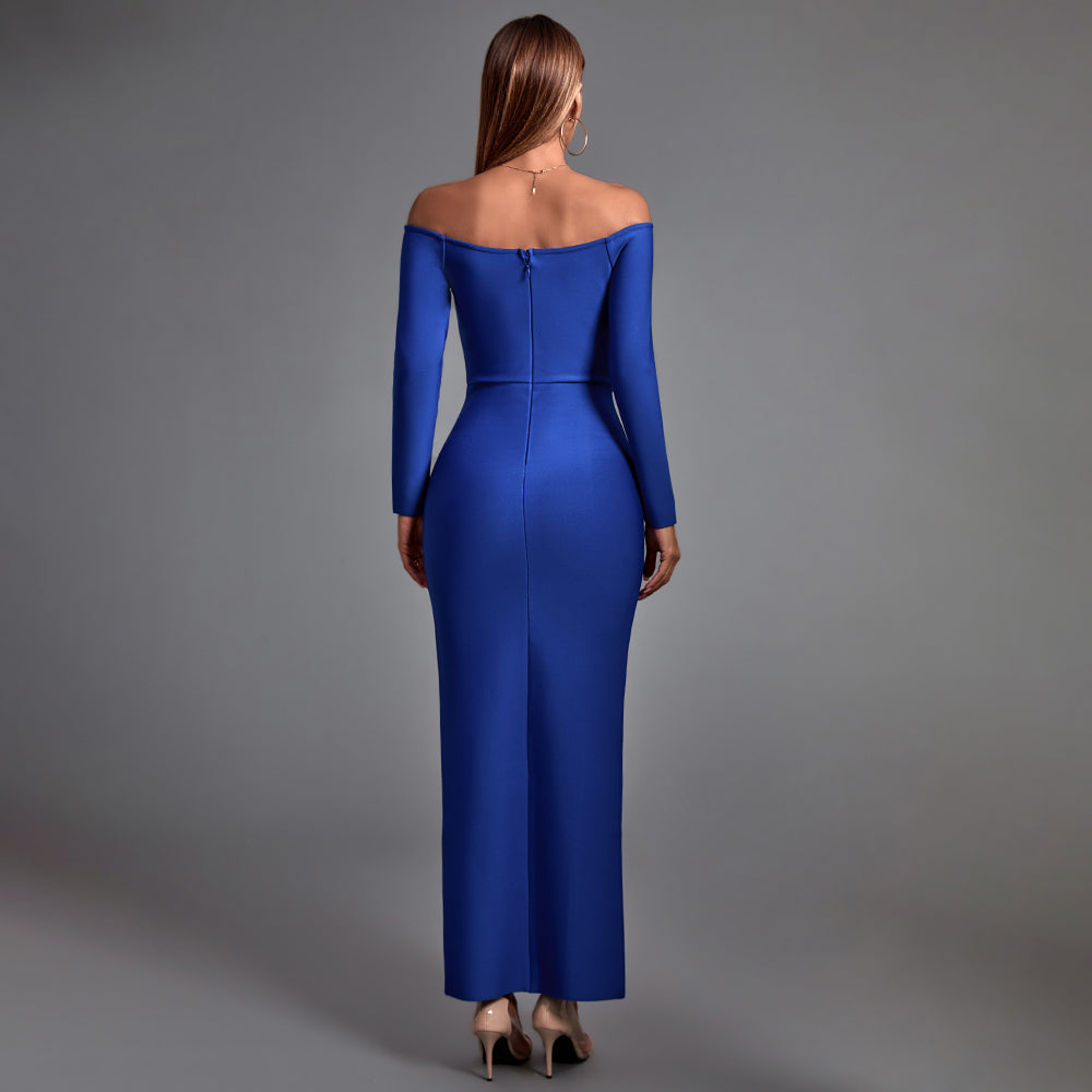 Robe maxi bandage fendue à manches longues et épaules dénudées