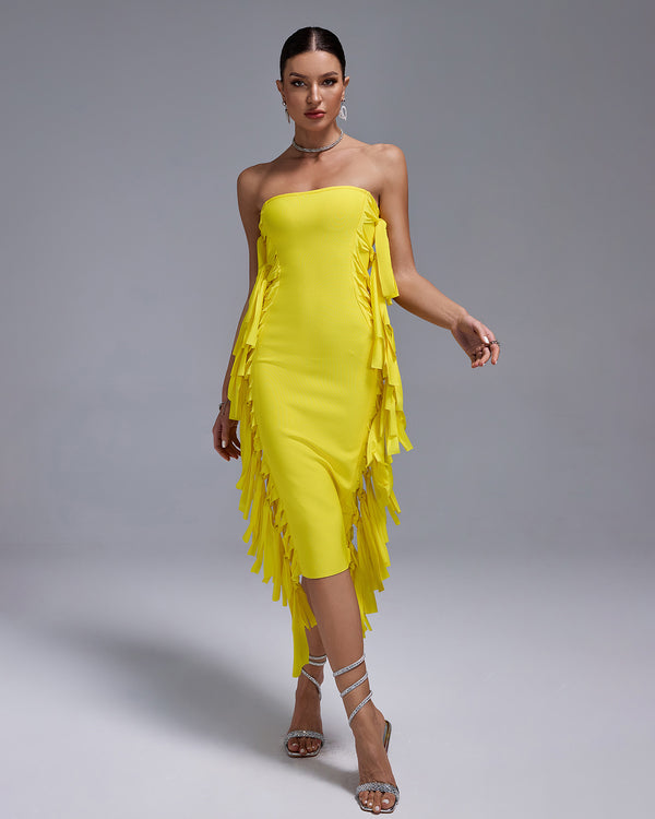 Sweetheart Shoulder Pads Bandage Midi Dress