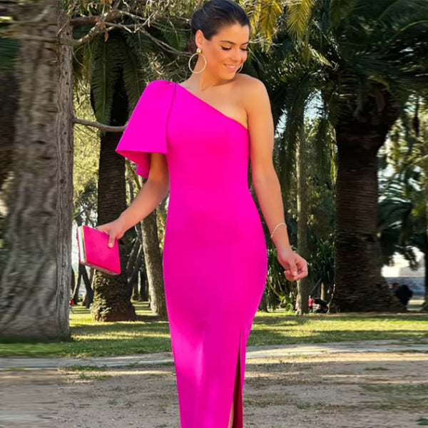 One Shoulder Ruffle Cocktail Bandage Dress
