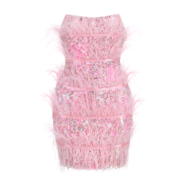 Strapless Sleeveless Sequins Mini Bodycon Dress HT20330