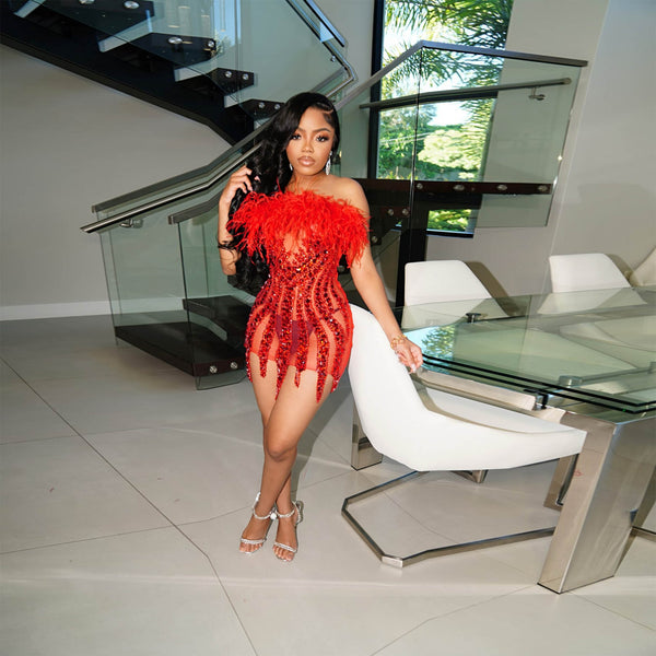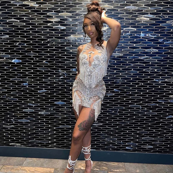 Crystal Fringe Cutout Bandage Mini Dress
