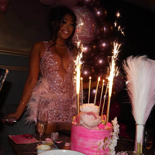 Feather Cuff Sleeves Bodycon Dress