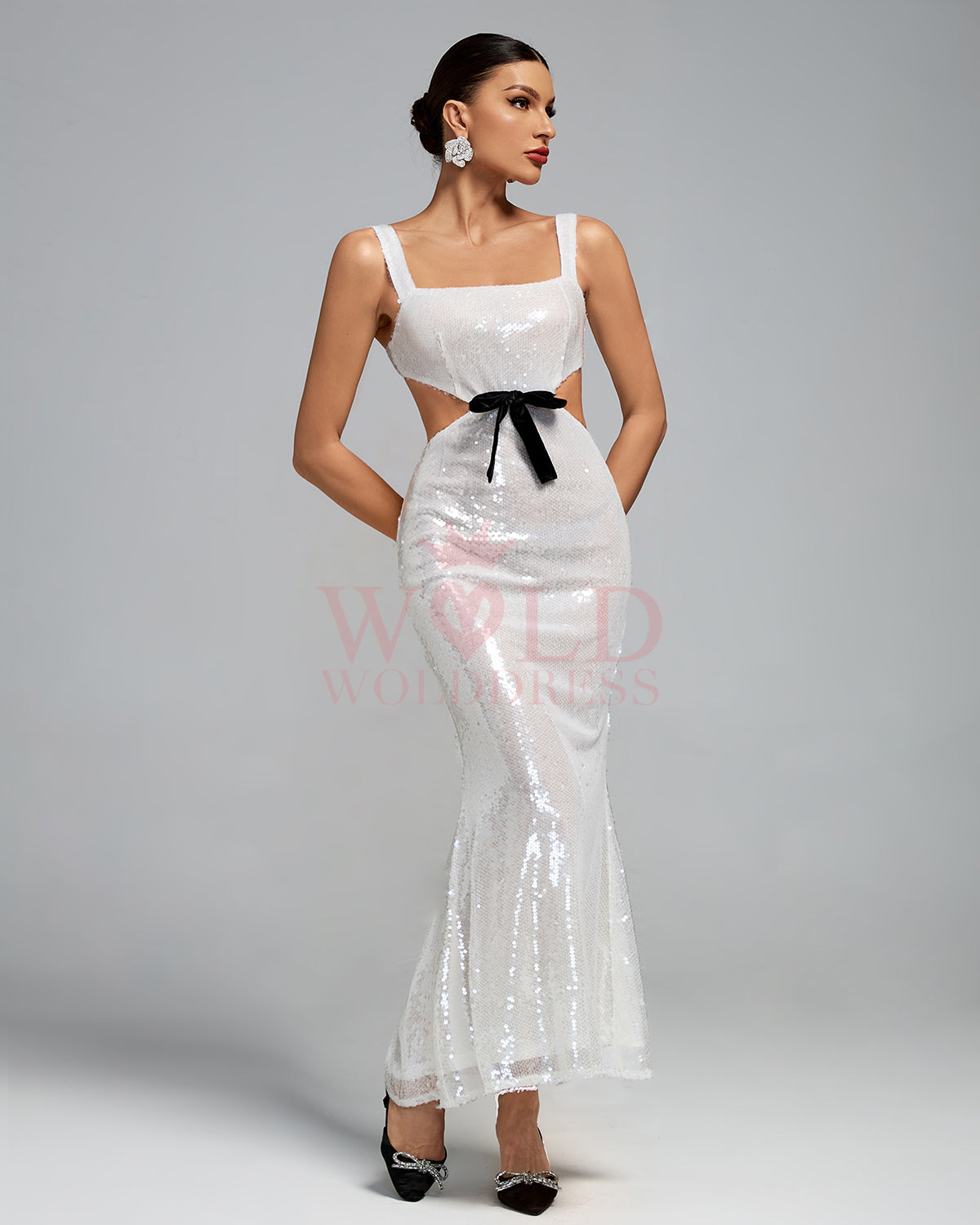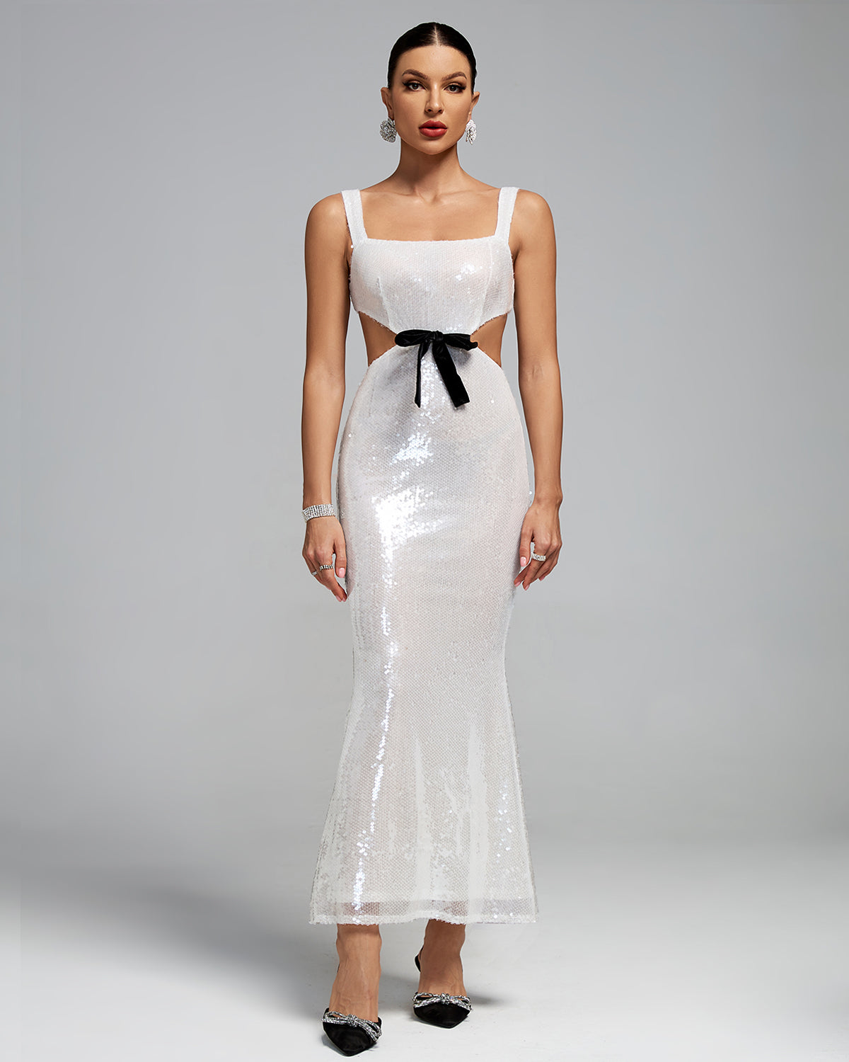 Square Neck Cutout Bow Sequins Maxi Dress
