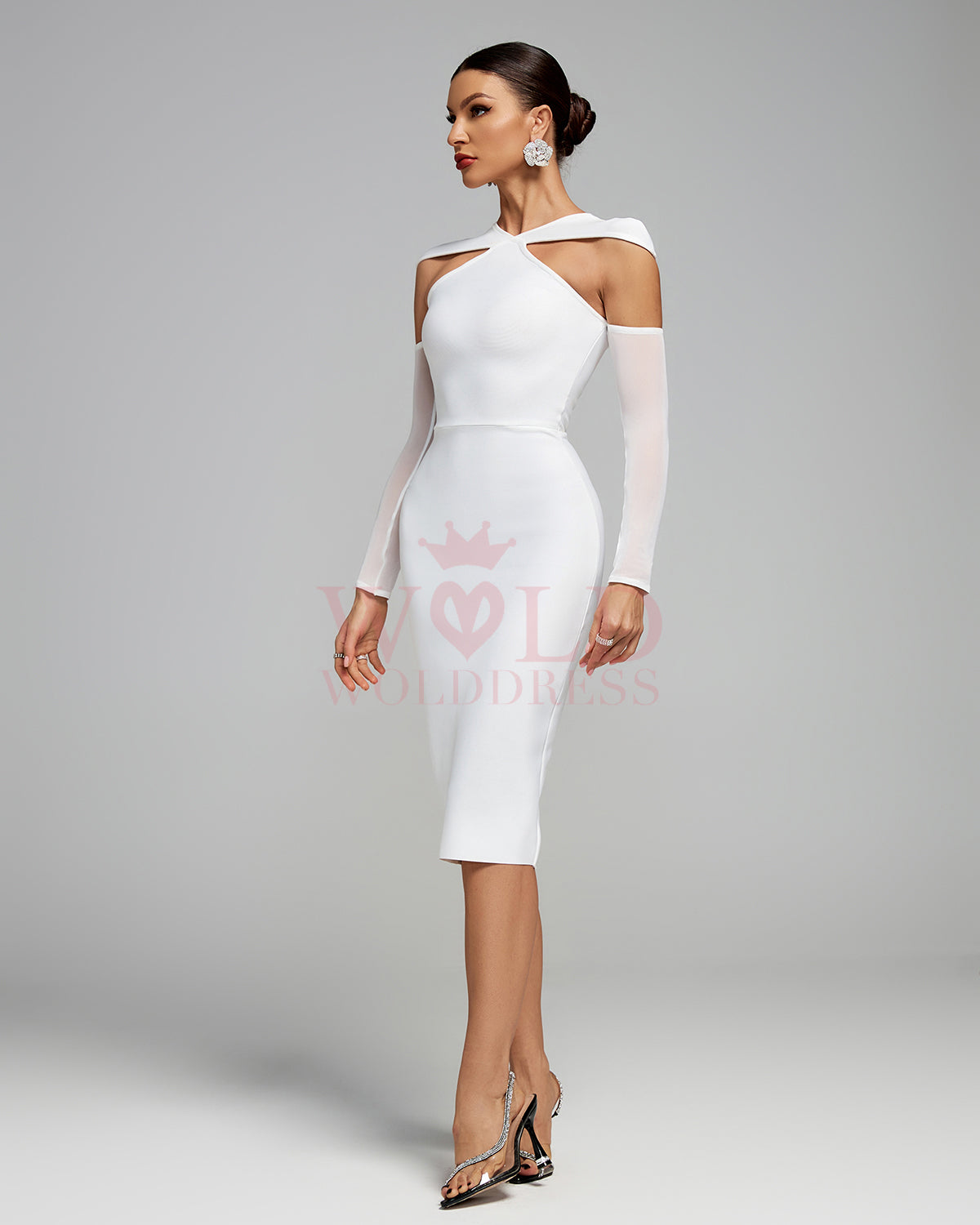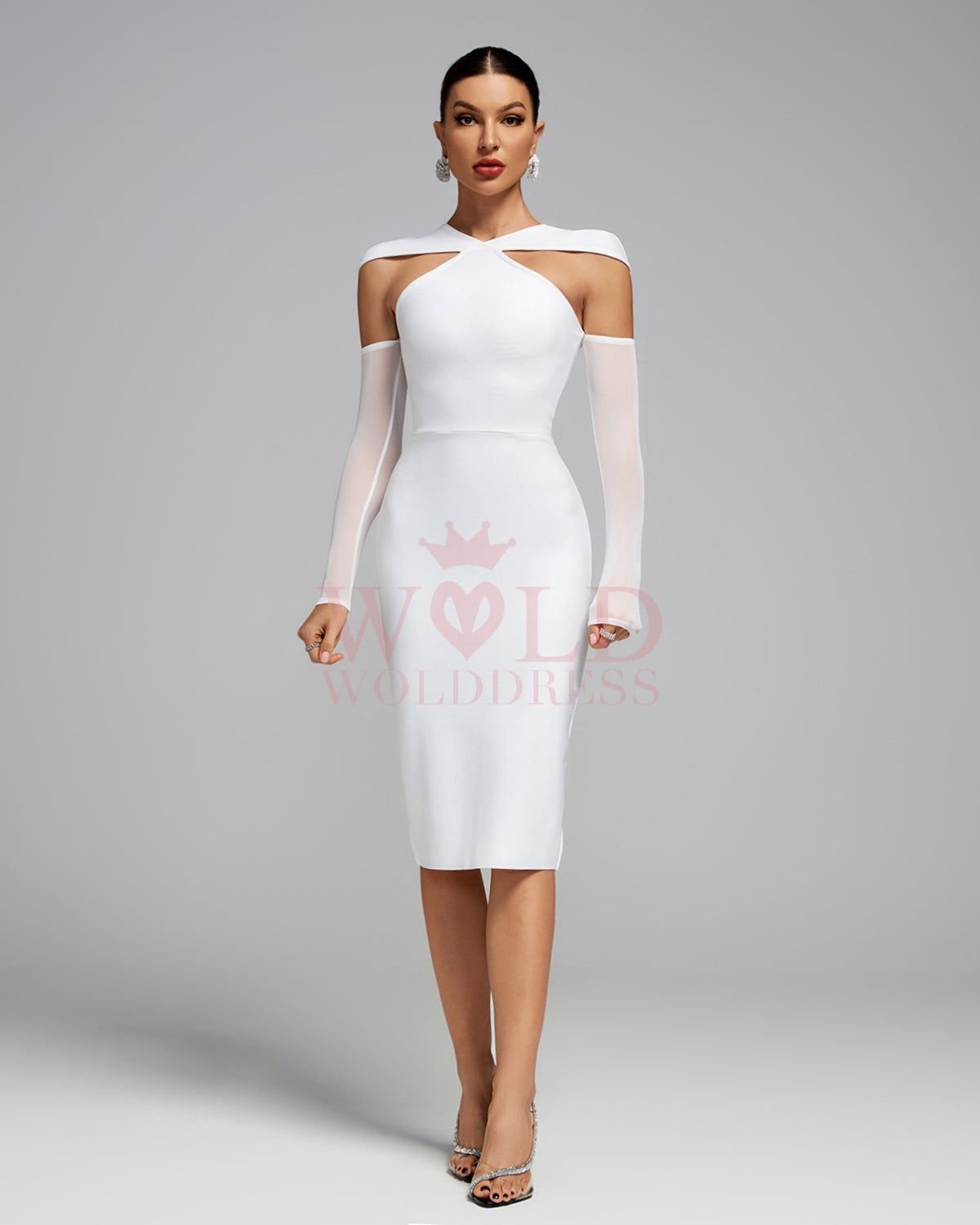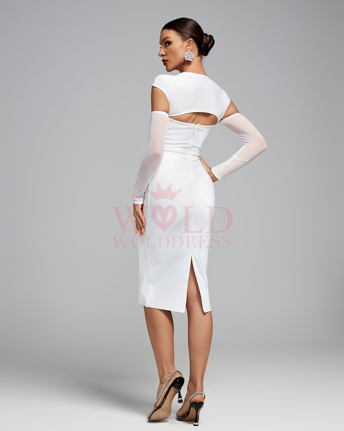 Arm Sleeves Hollow-out Midi Bandage Dress