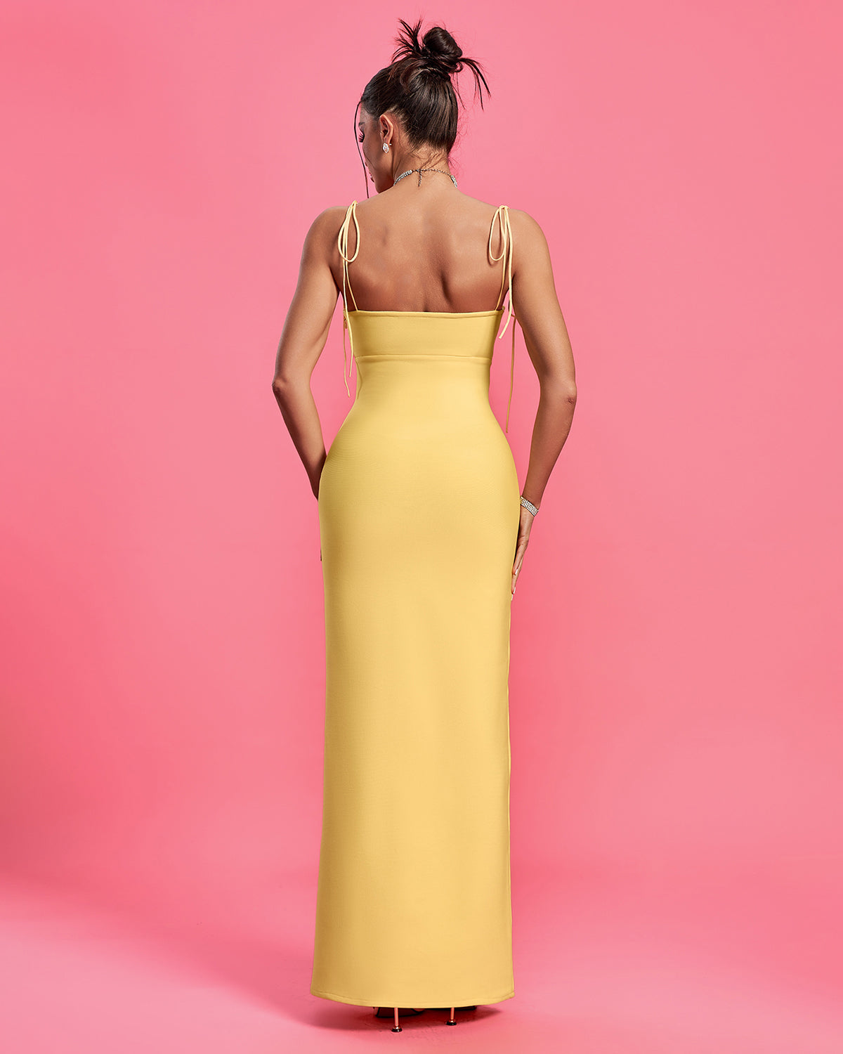 This expertly designed Cutout Open Back Maxi Bandage Dress seamlessly combines style and functionality. The elegant cutouts and open back add a touch of allure, while the bandage material provides a flattering fit. Perfect for any occasion, this dress will make you feel confident and chic.