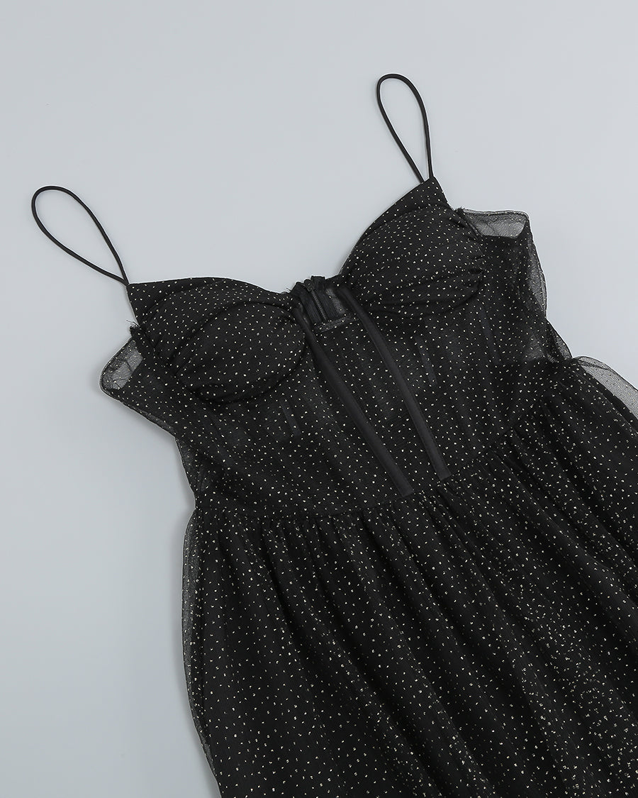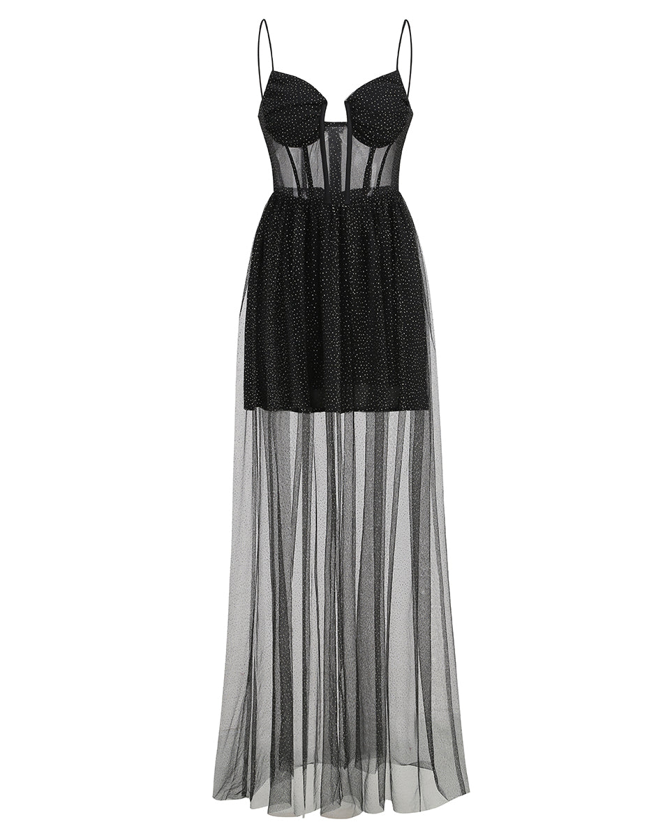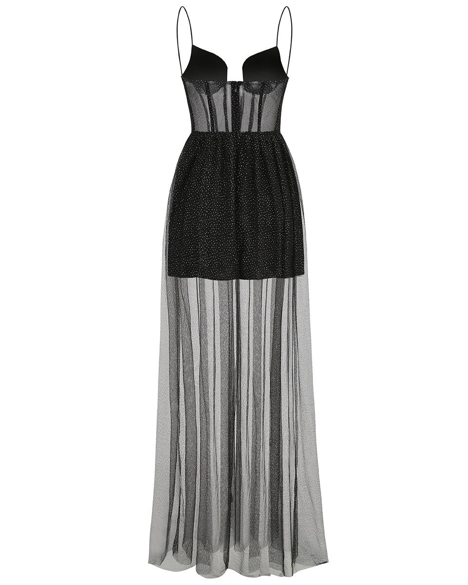 Robe longue corset drapée en tulle avec strass