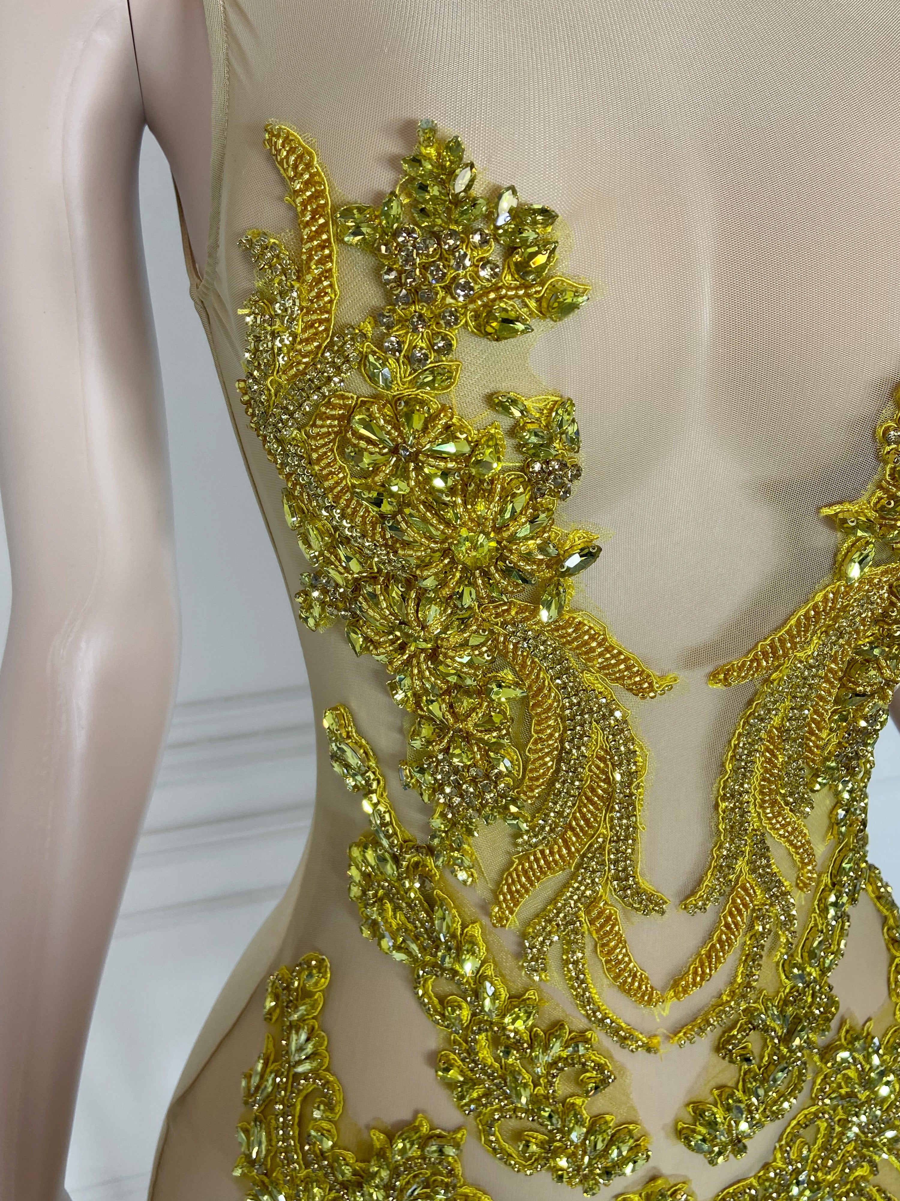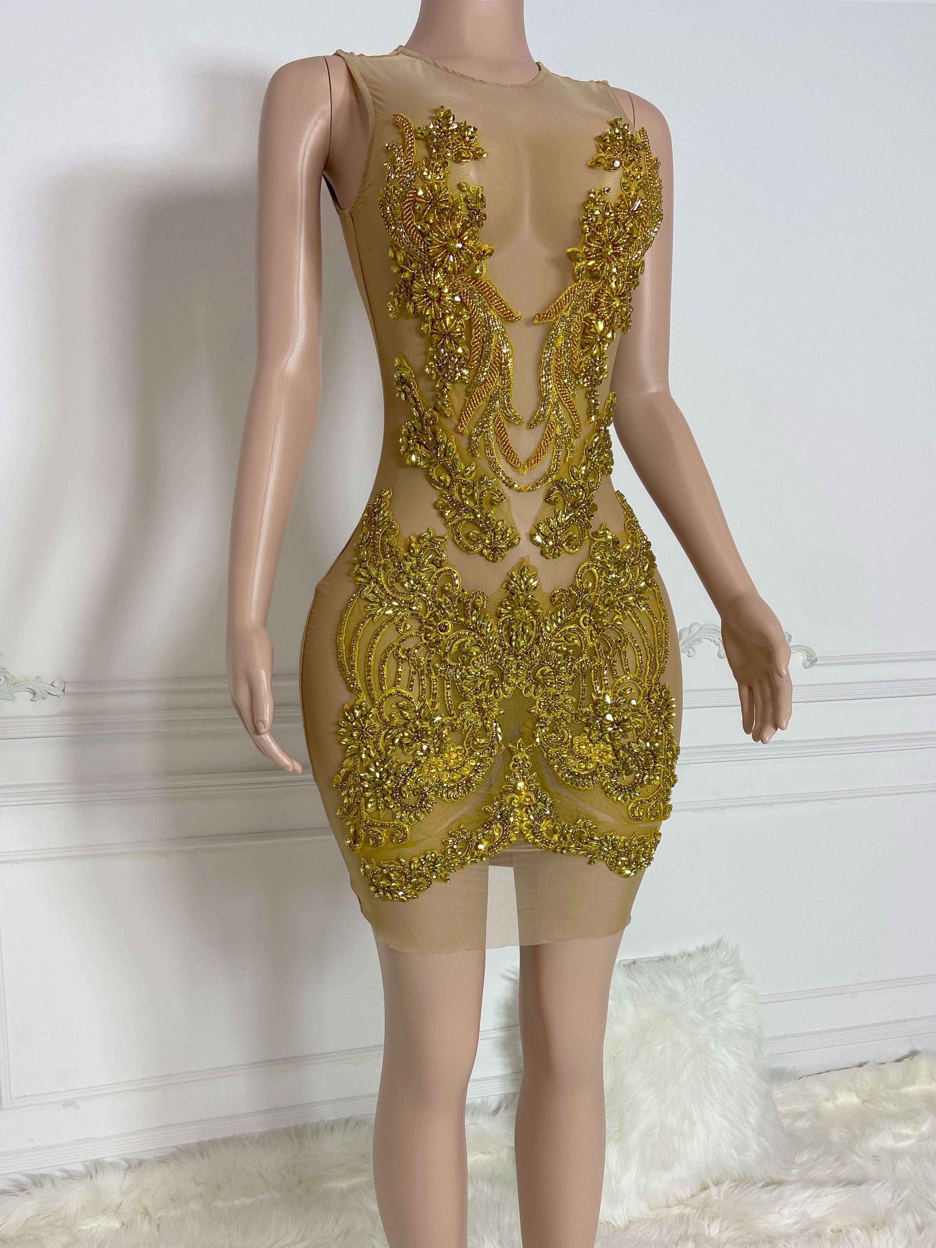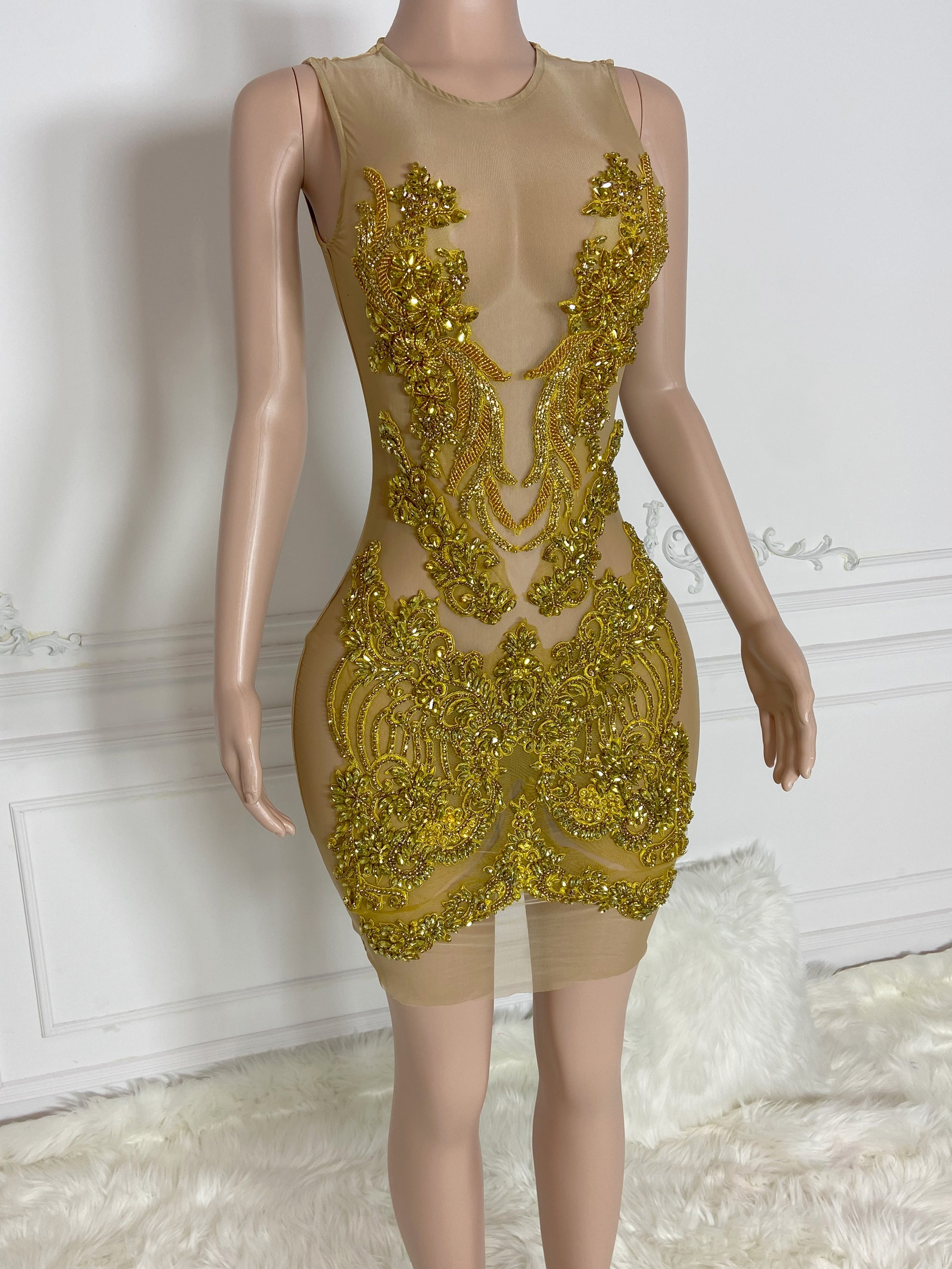 Gold Round Neck Sleeveless with Multi Stones Mini Dress