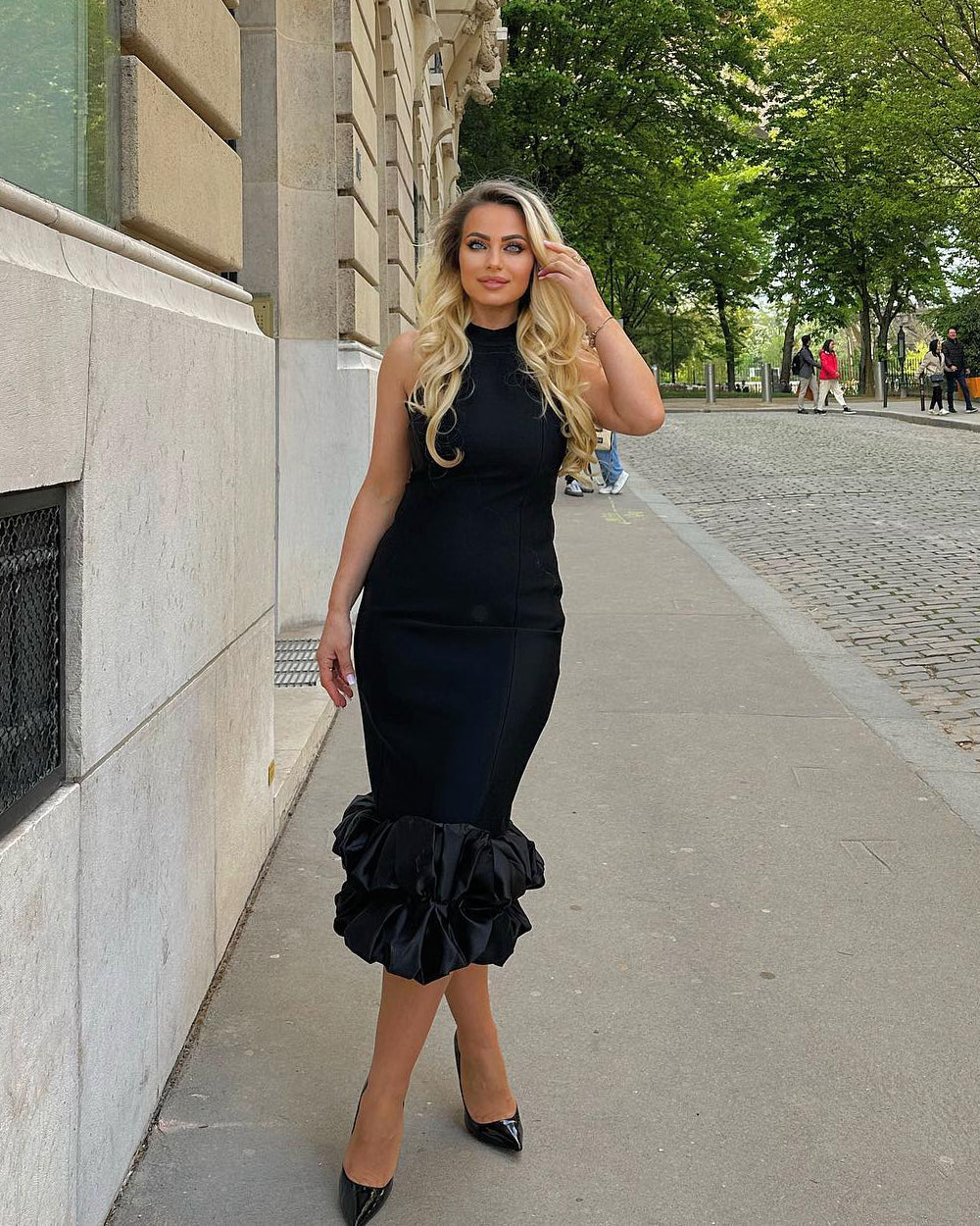 Faites une entrée audacieuse dans cette robe de cocktail en crêpe à ourlet volanté ! Cette robe séduisante présente un ourlet à volants dramatique, ajoutant une touche accrocheuse à votre look. Parfaite pour un cocktail ou un événement spécial, cette robe ne manquera pas de faire sensation. Alors, laissez parler votre style et préparez-vous à rocker toute la nuit !