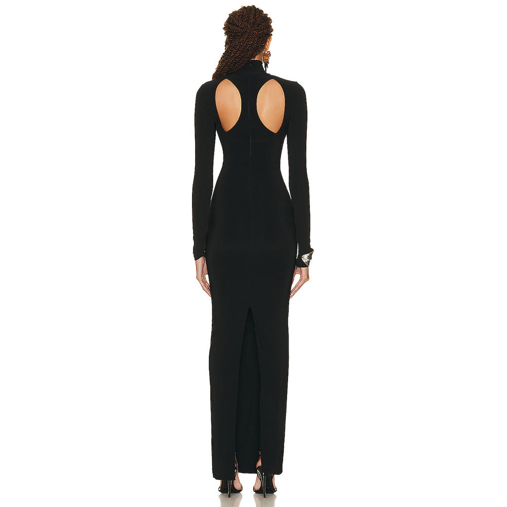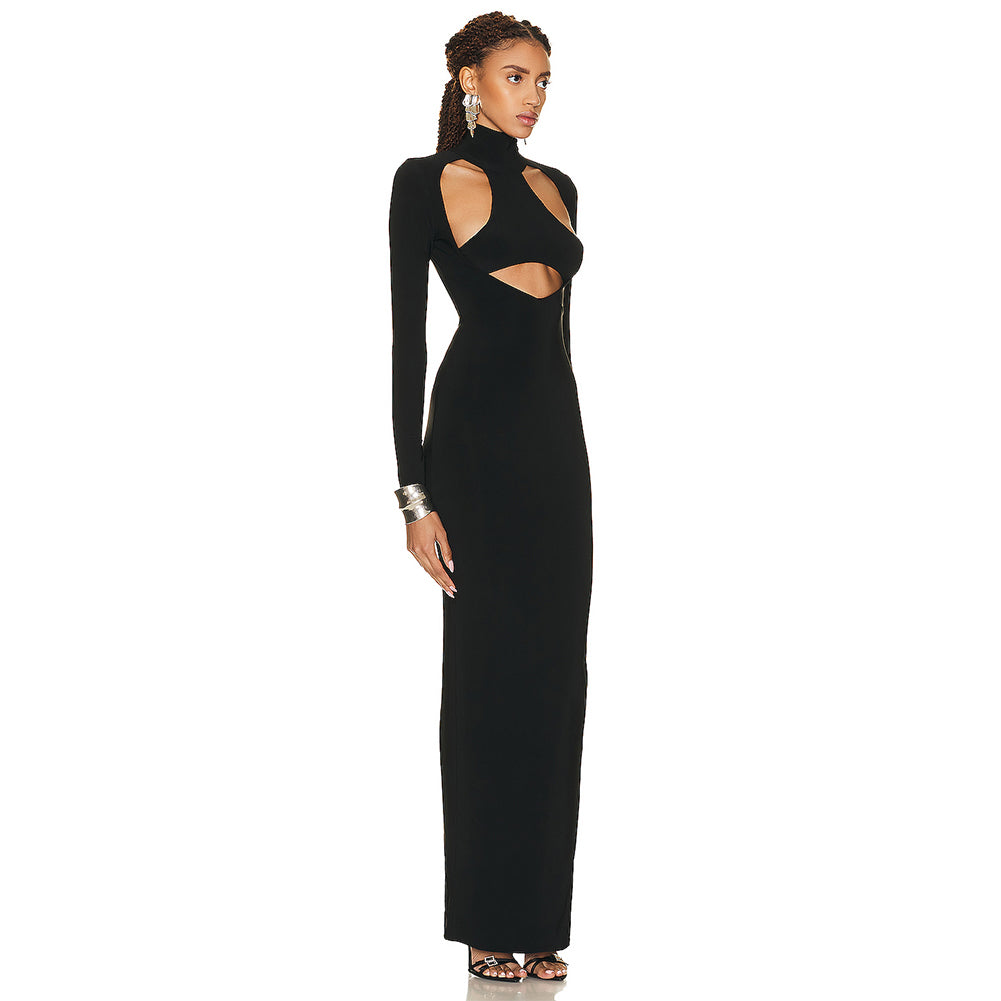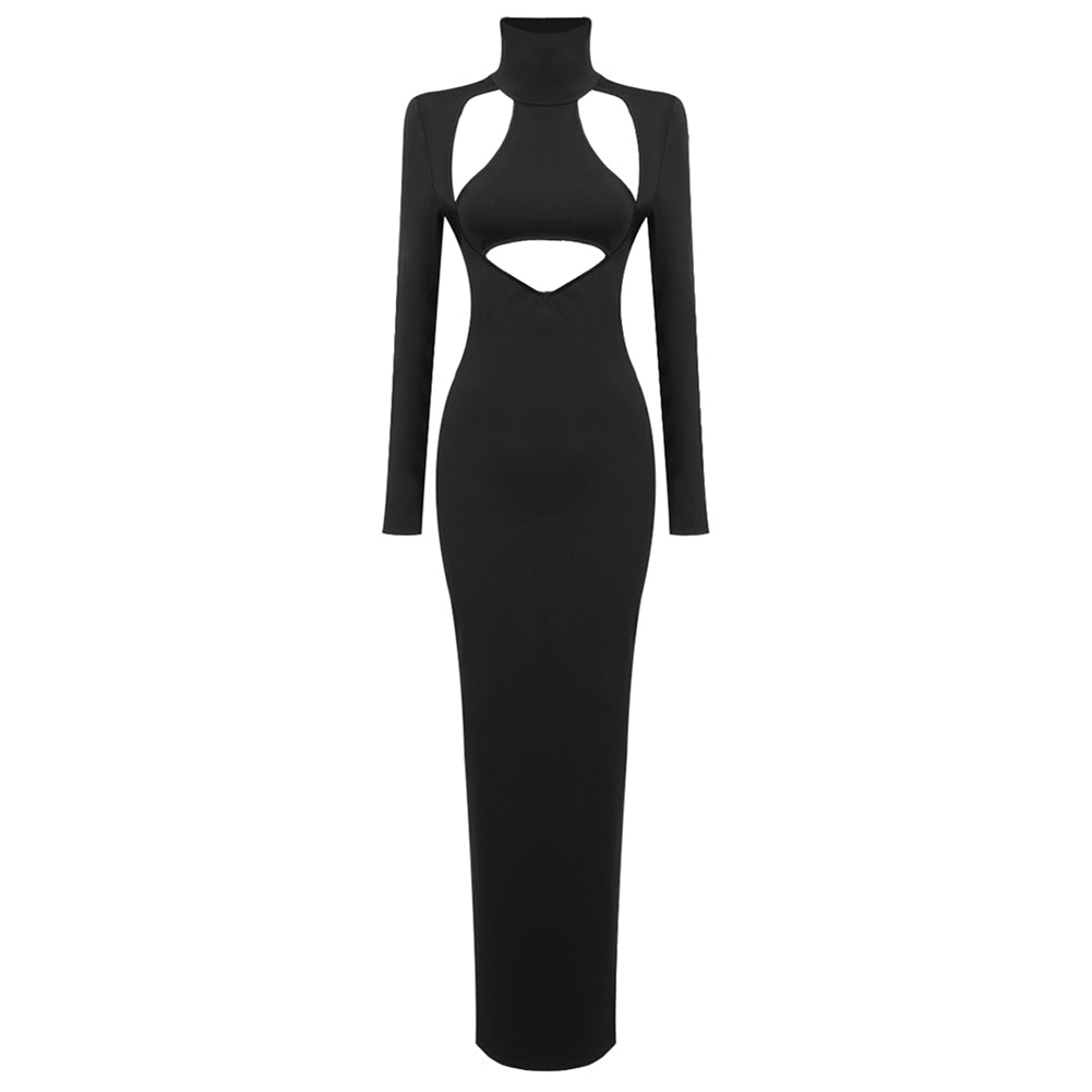 High Neck Hollow Out Maxi Bodycon Dress BD2417