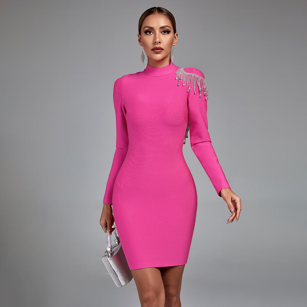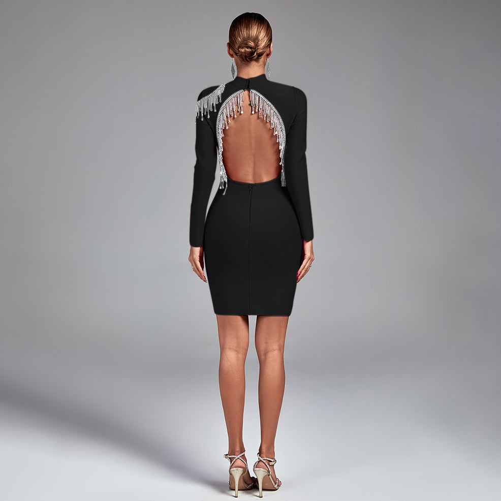 Éblouissez votre chemin dans la pièce avec cette robe bandage dos nu à franges en strass ! Parfaite pour toutes les occasions, cette robe est sûre de faire une déclaration de luxe et de glamour. La coupe moulante et les détails bling-out feront tourner les têtes - après tout, il est impossible de se tromper avec un peu de paillettes et de glamour !