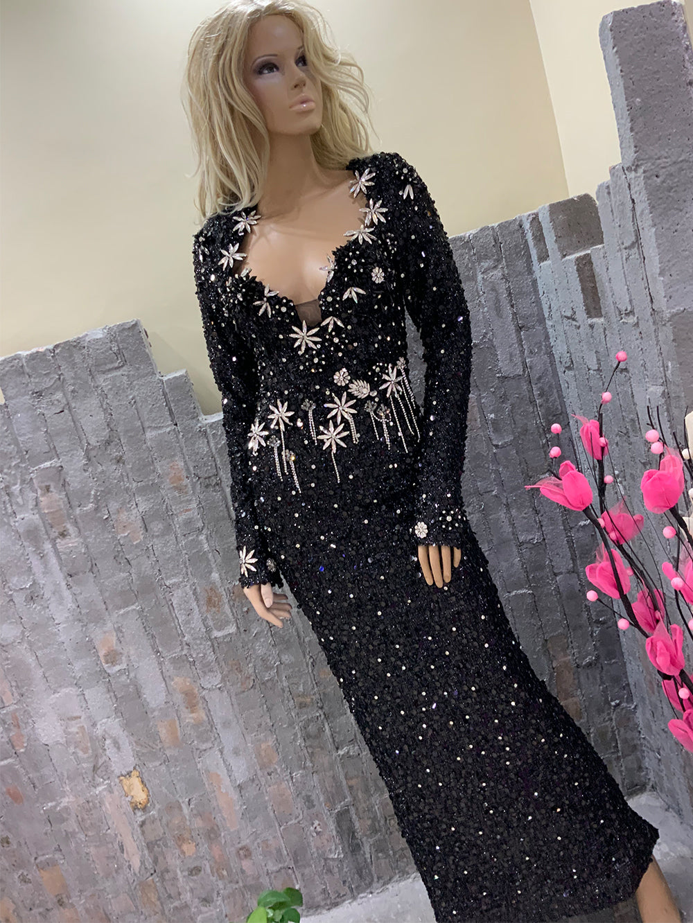 Long Sleeve Exquisite Maxi Bodycon Dress HT21470