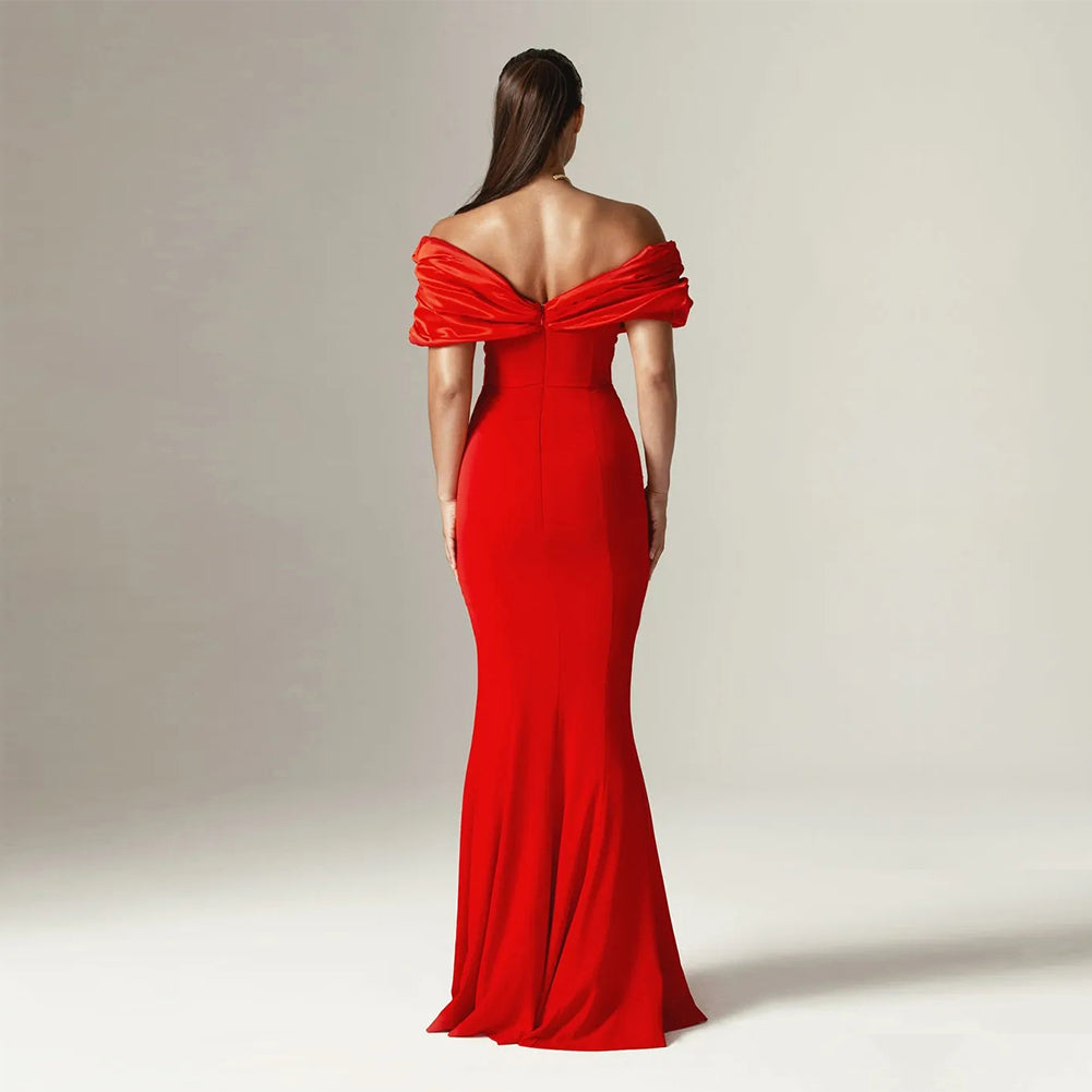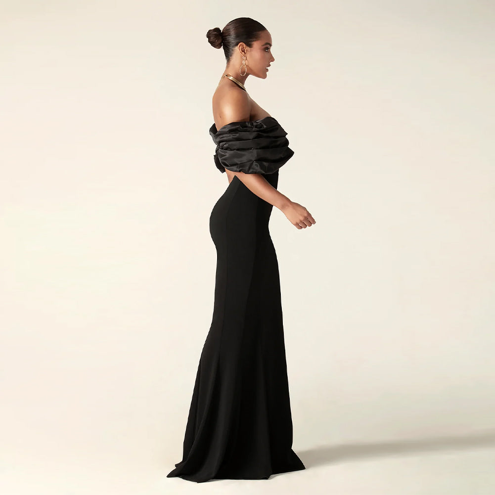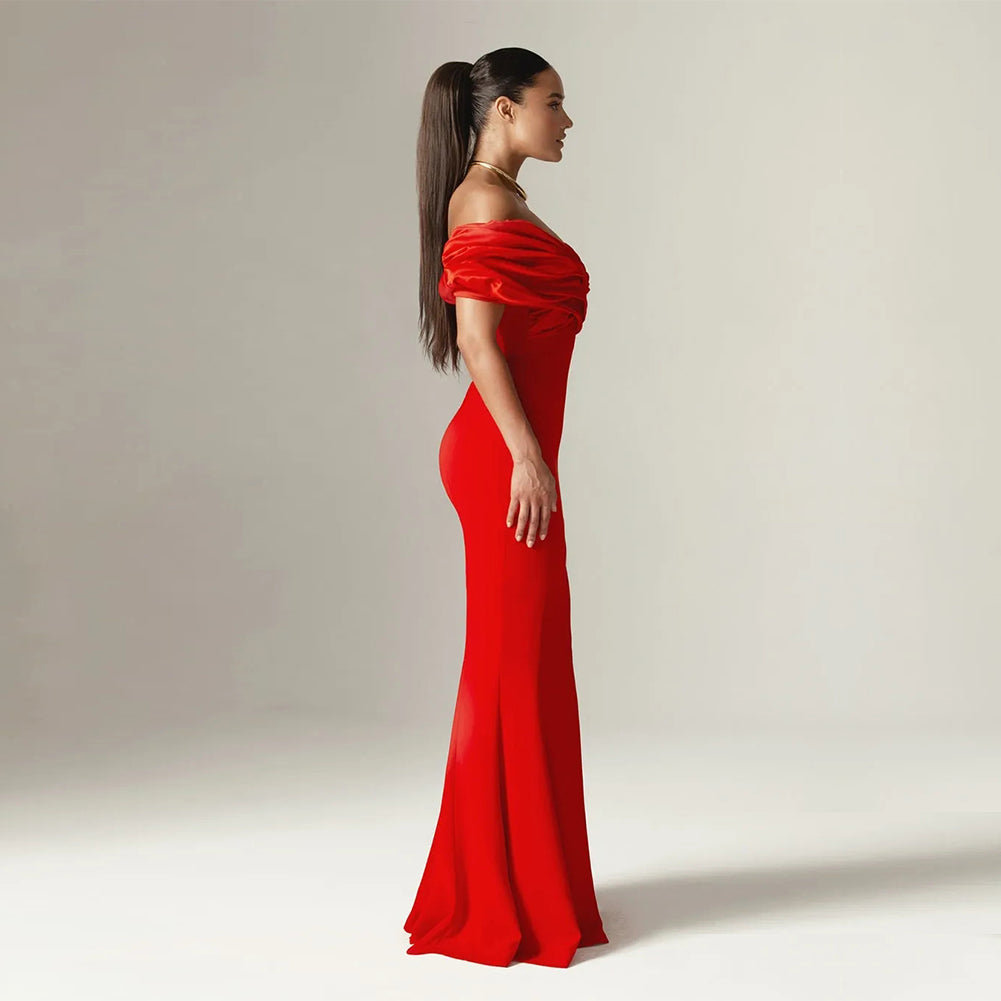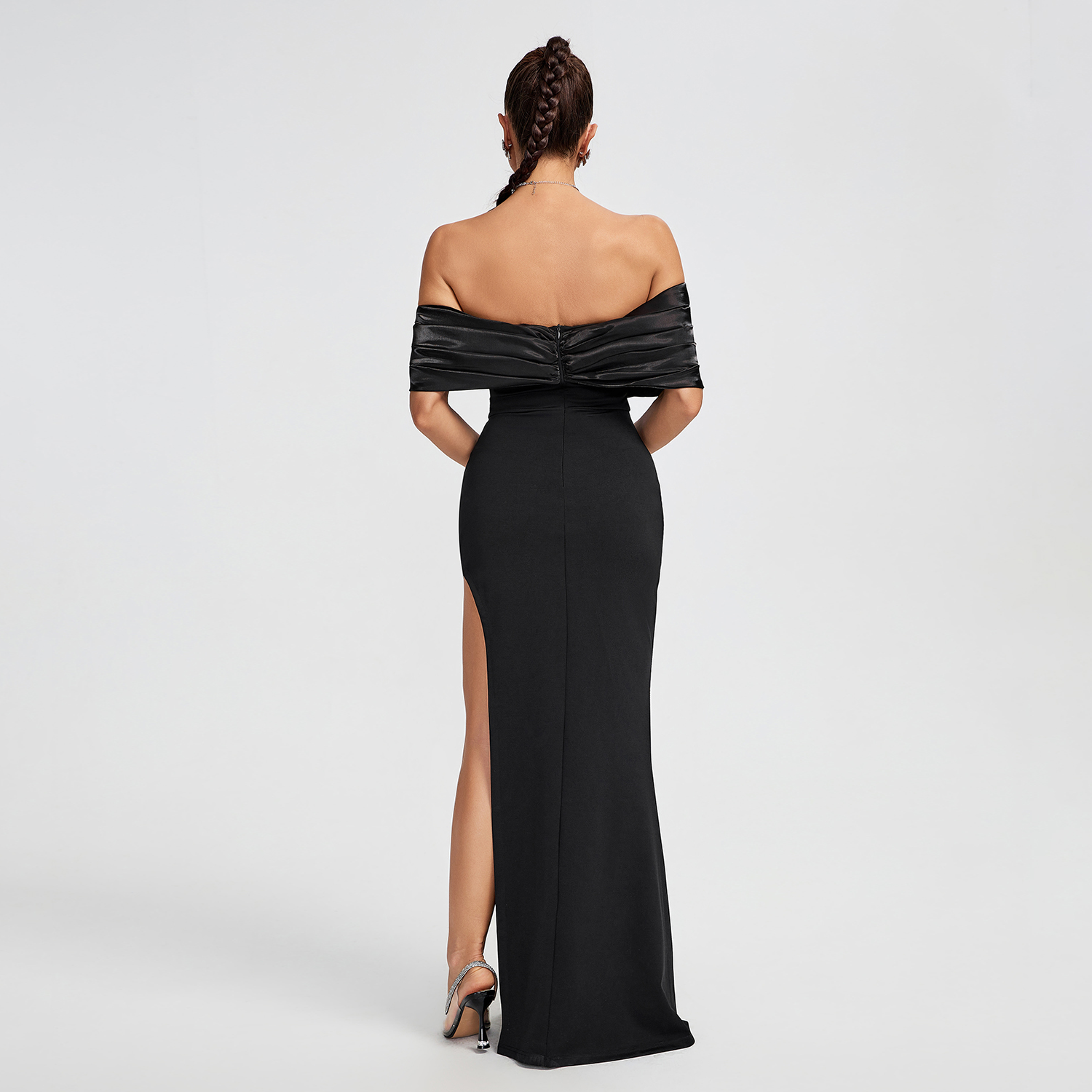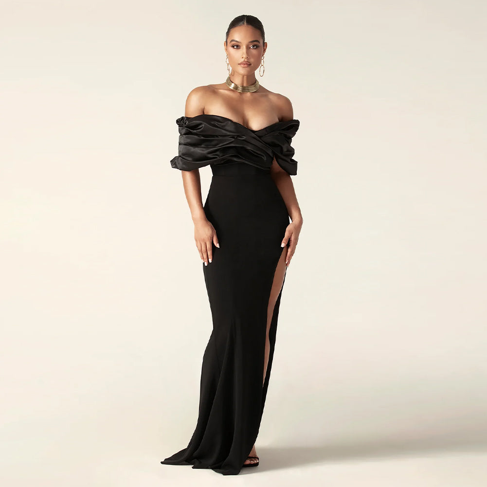 Channel your inner elegance with our Off Shoulder Demure Maxi Dress. The off shoulder neckline adds a touch of romance, while the flowing maxi length exudes sophistication. Made with quality materials, this dress is perfect for any formal event. Elevate your style and make a statement with this stunning piece.