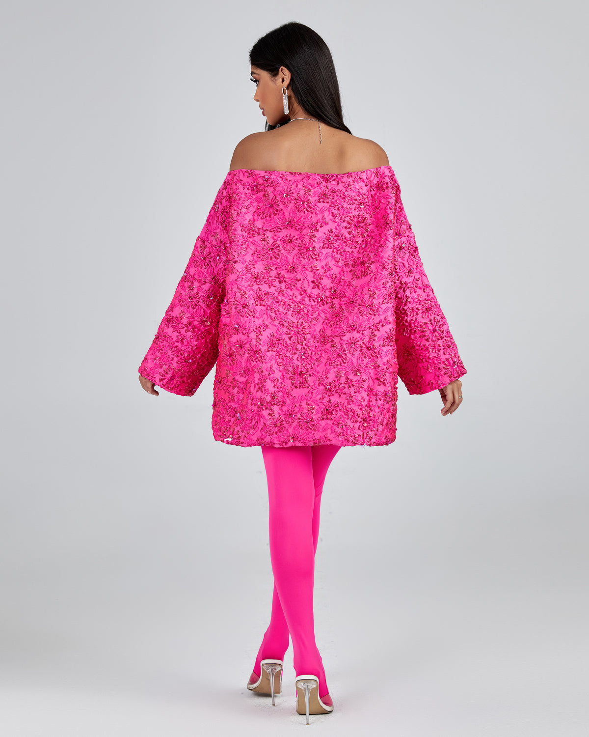 Discover luxury with our Off Shoulder Jacquard Loose Fitting Dress. Featuring an elegant jacquard fabric and a flattering loose fit, this dress is perfect for any special occasion. With sophisticated off-shoulder detailing, it will have you looking stylish and chic all night long.