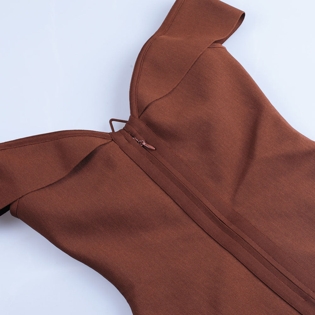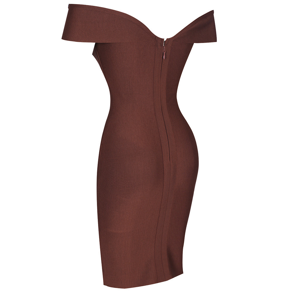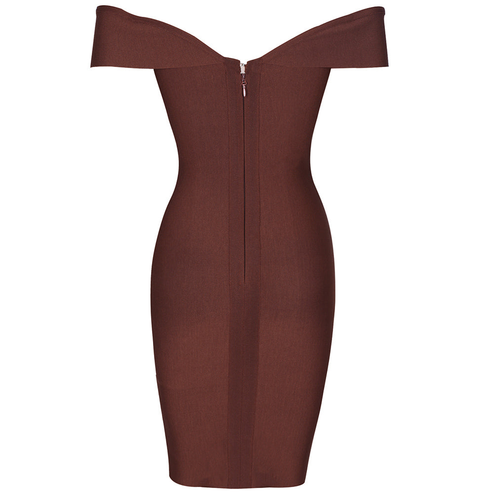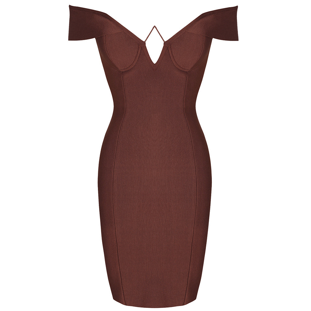 Robe bandage élégante mi-longue à épaules dénudées PF21611