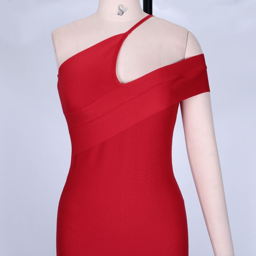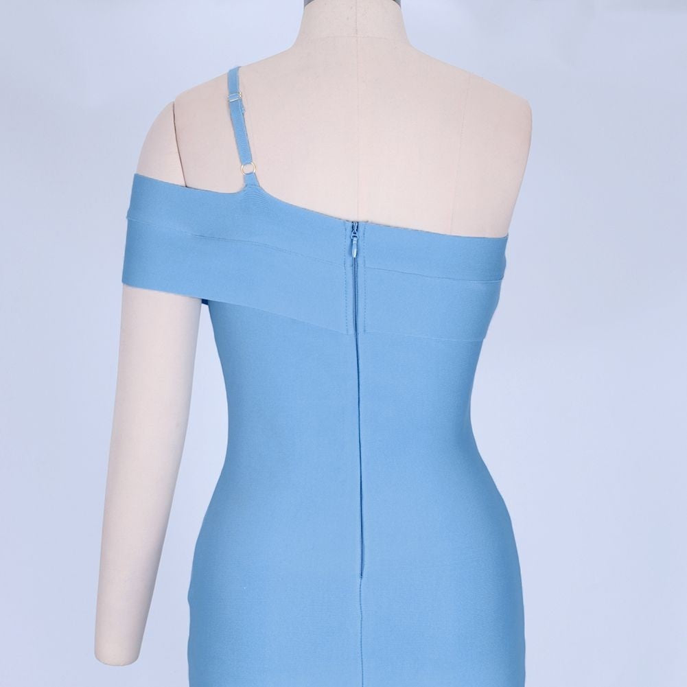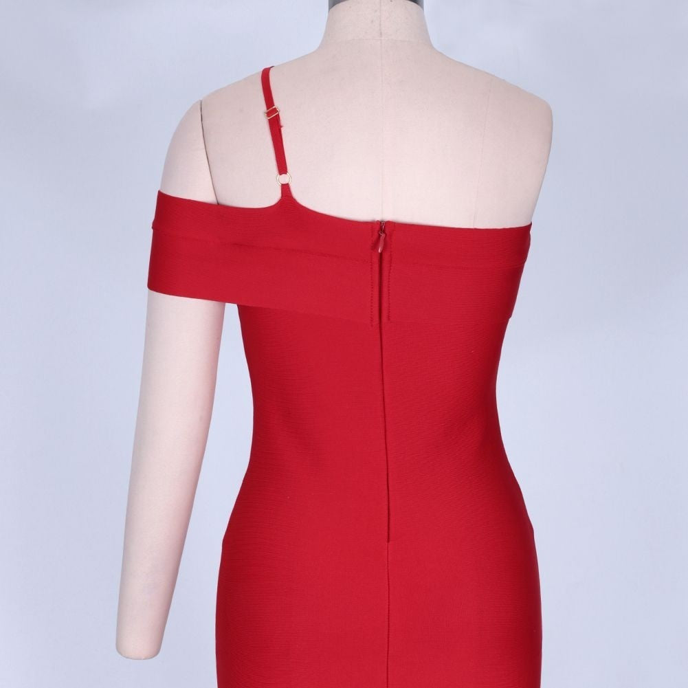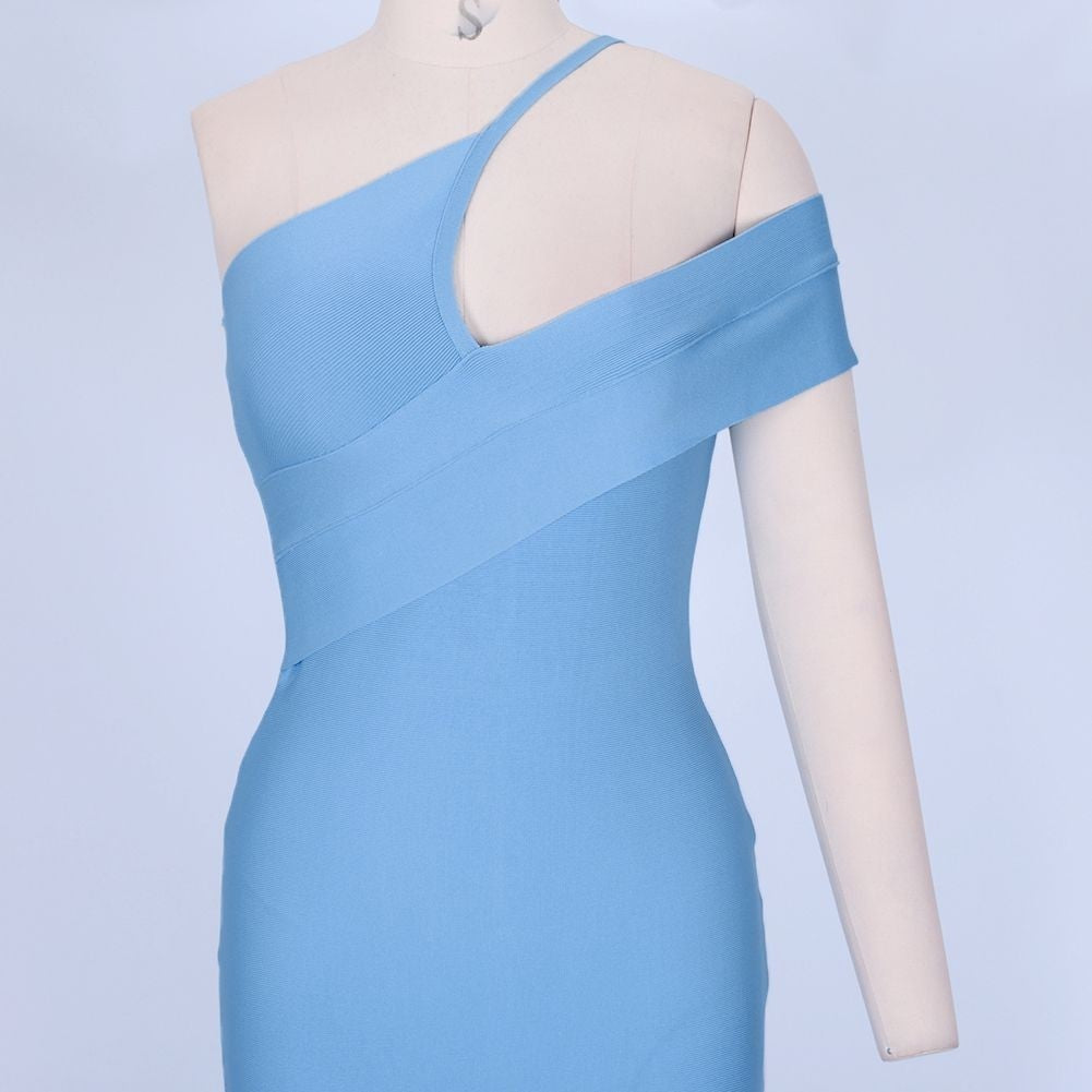 Robe bandage asymétrique à une épaule à manches courtes sur le genou PZ19198