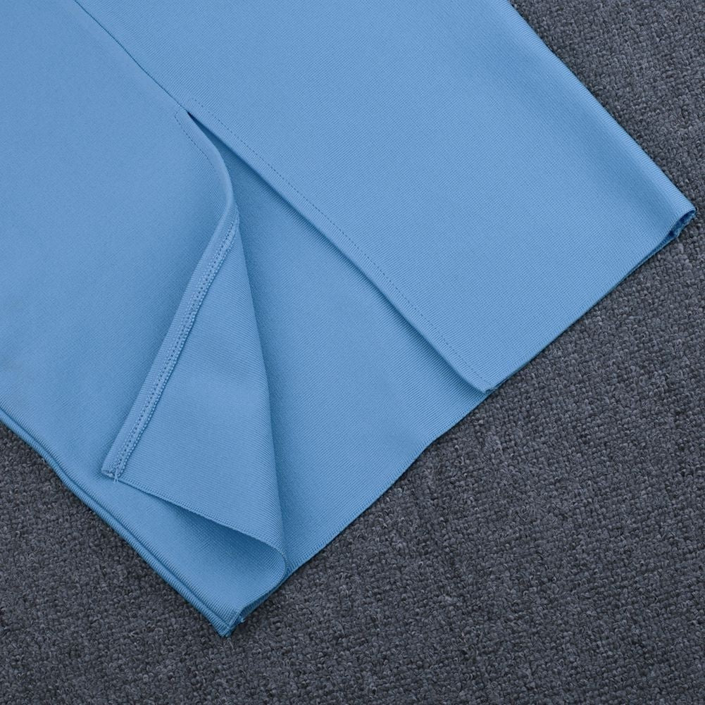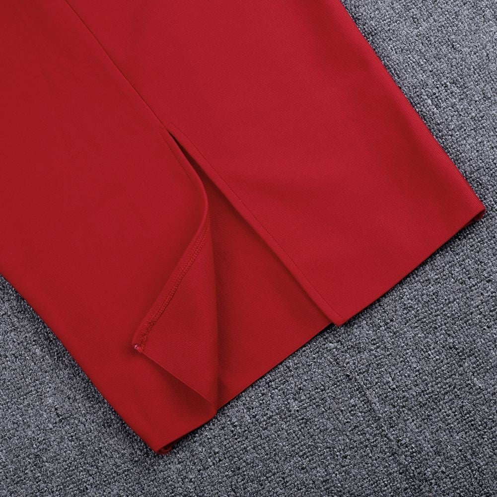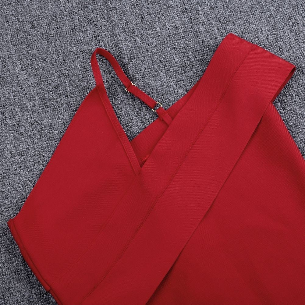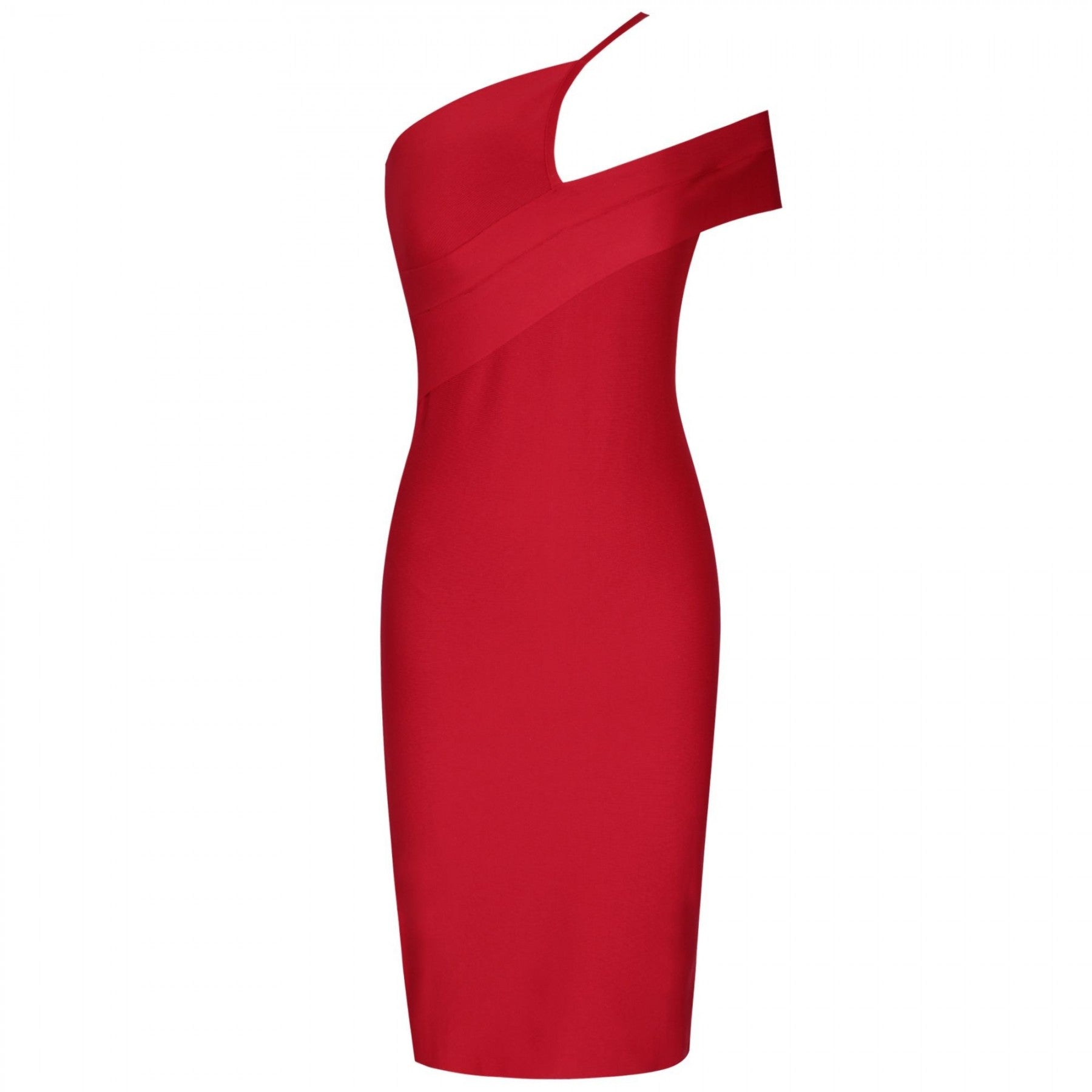 Robe bandage asymétrique à une épaule à manches courtes sur le genou PZ19198