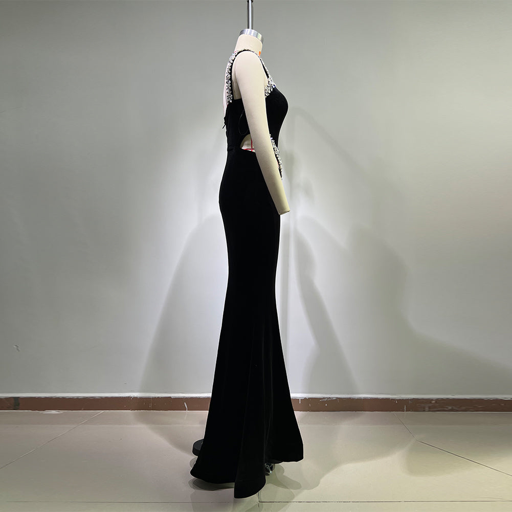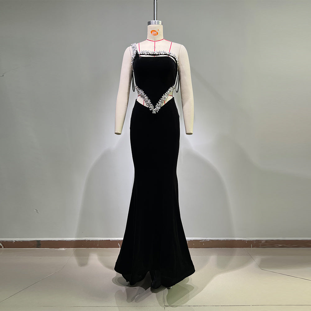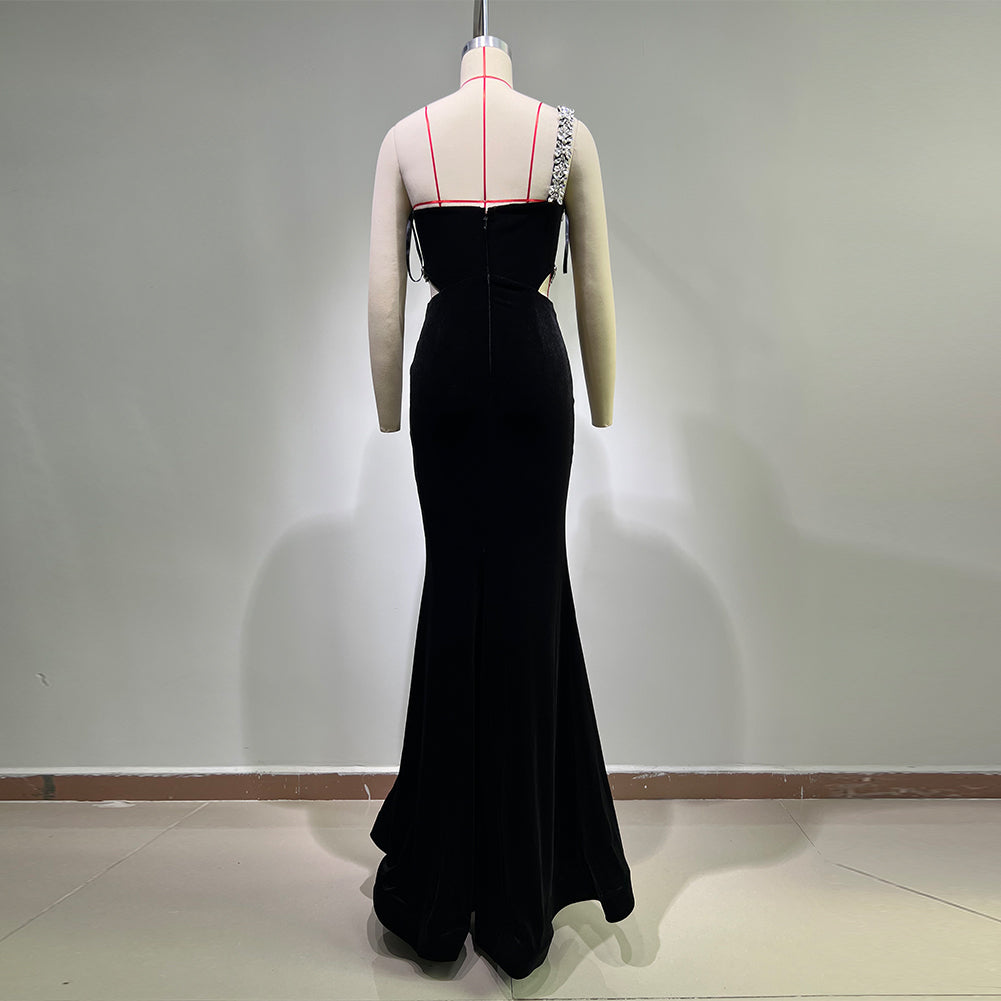 One Shoulder Sleeveless Cut Out Maxi Bodycon Dress HT11220