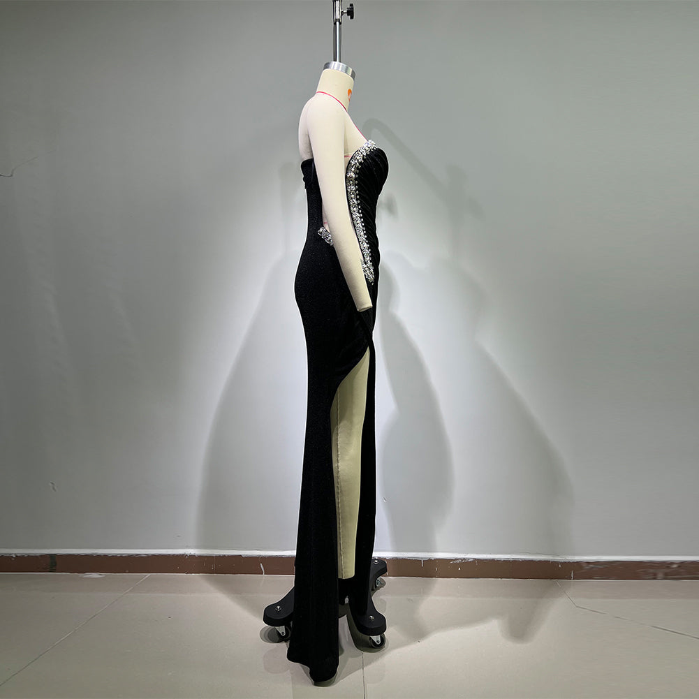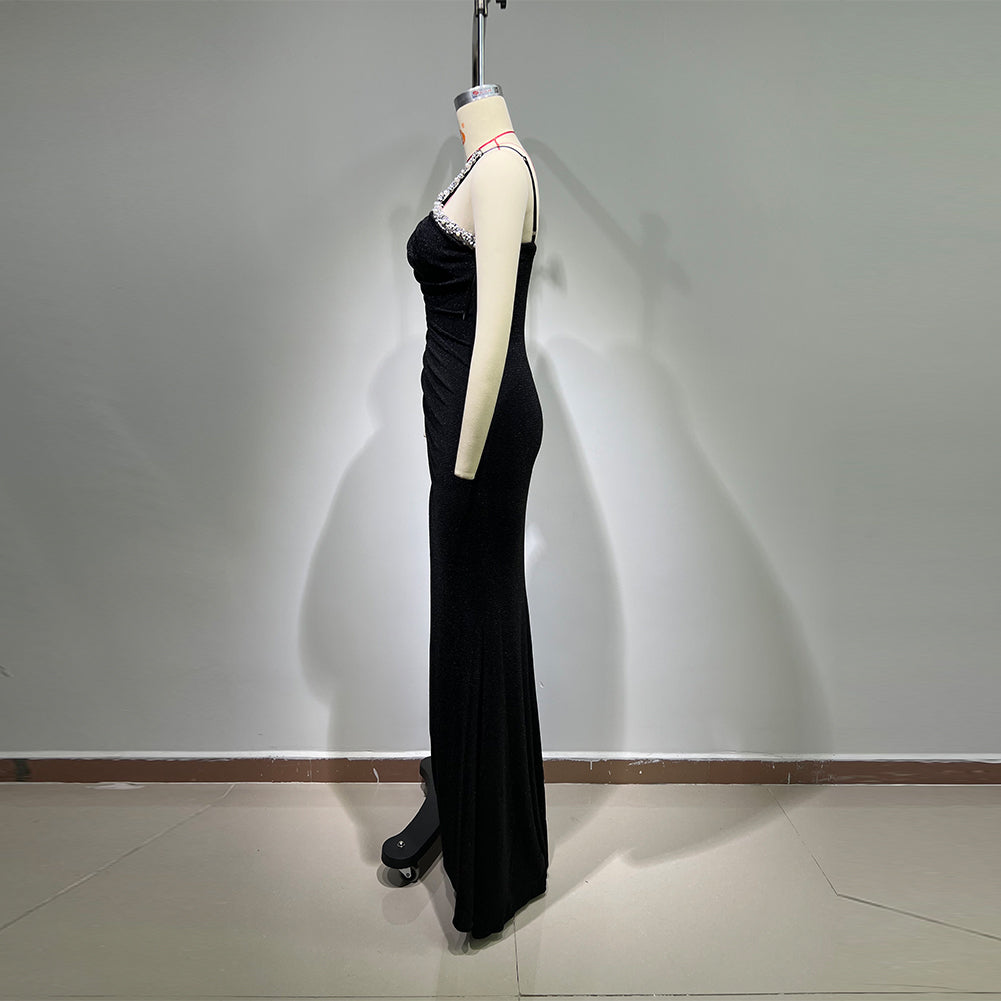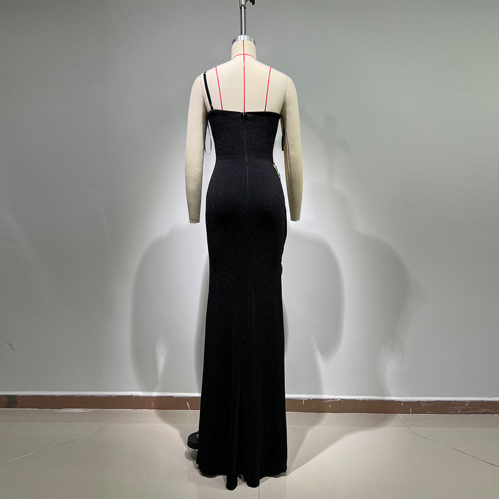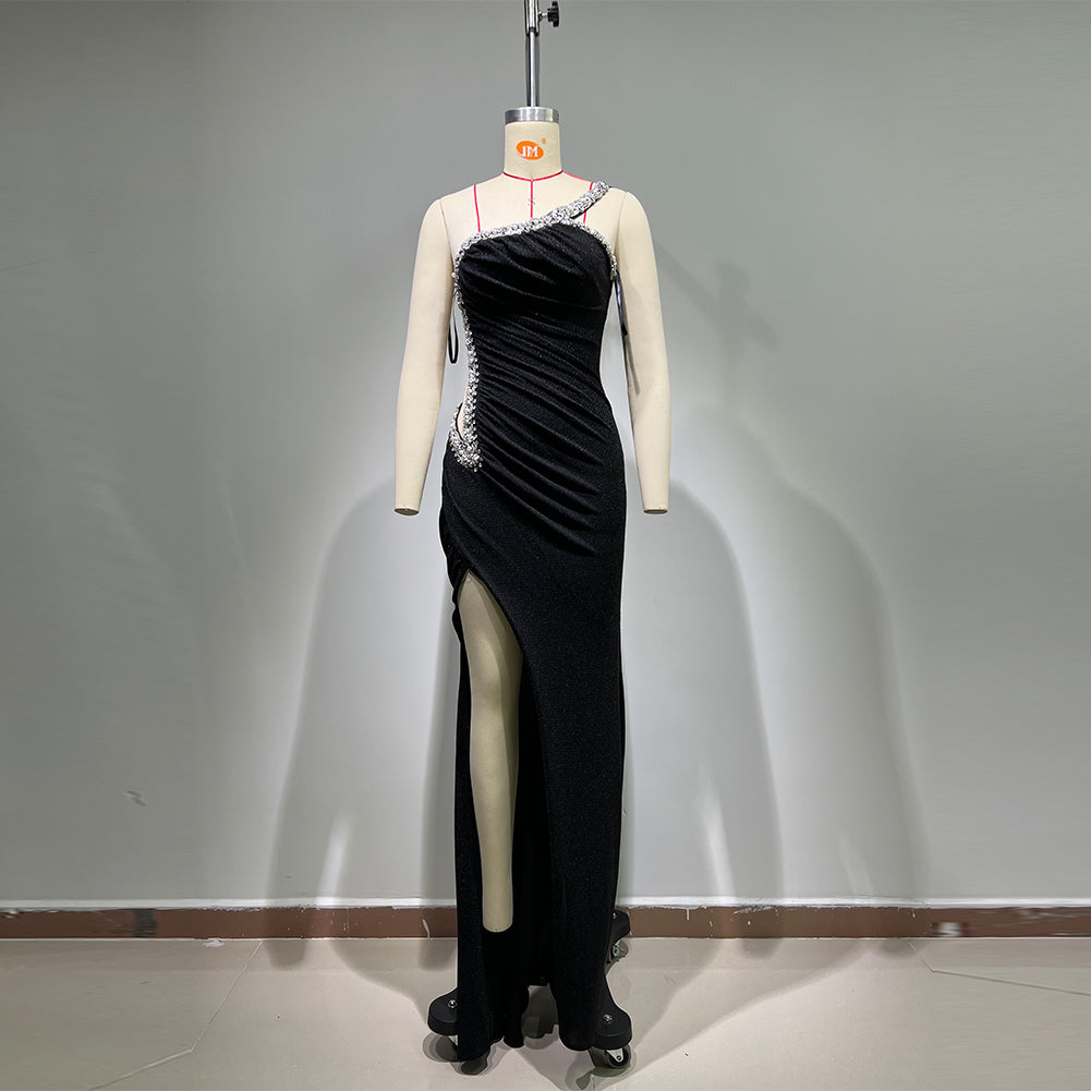 One Shoulder Sleeveless Rhinestone Maxi Bodycon Dress HT1123