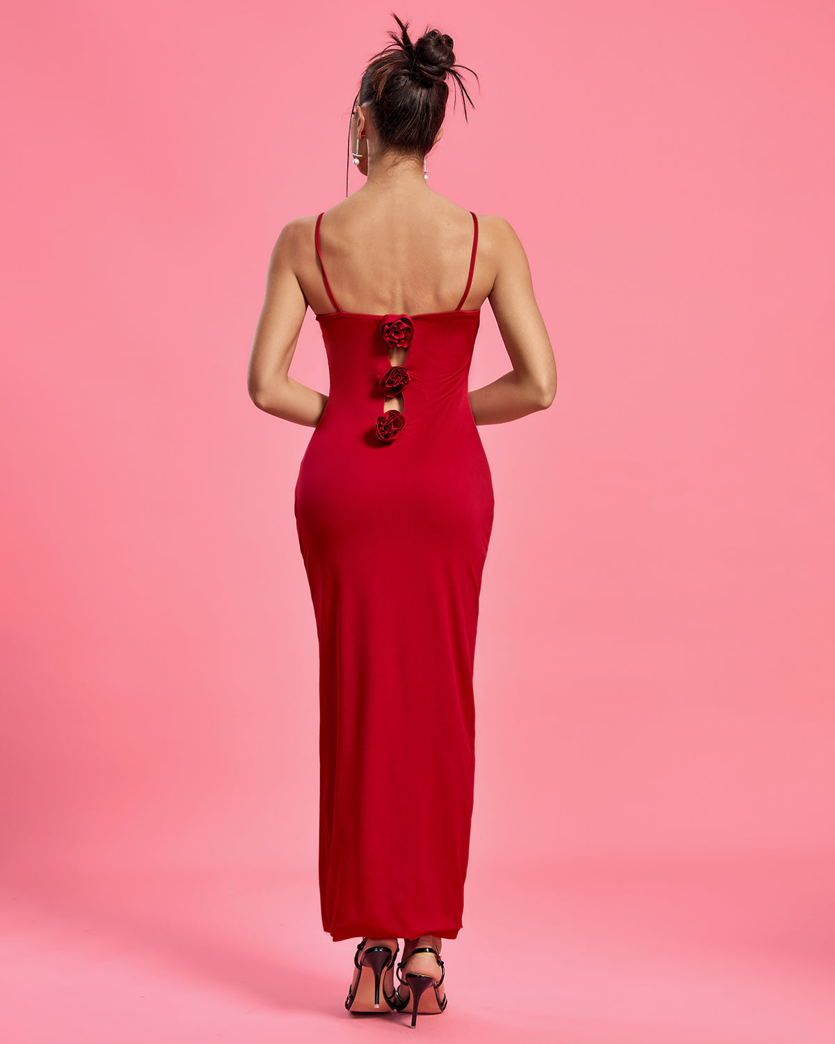 This sleeveless dress features an open back and cut-out rosette design, making it perfect for any special occasion. Its elegant design and flattering silhouette will make you stand out in a crowd, while the open back adds a touch of boldness. Crafted with high-quality materials, this dress is both comfortable and stylish.