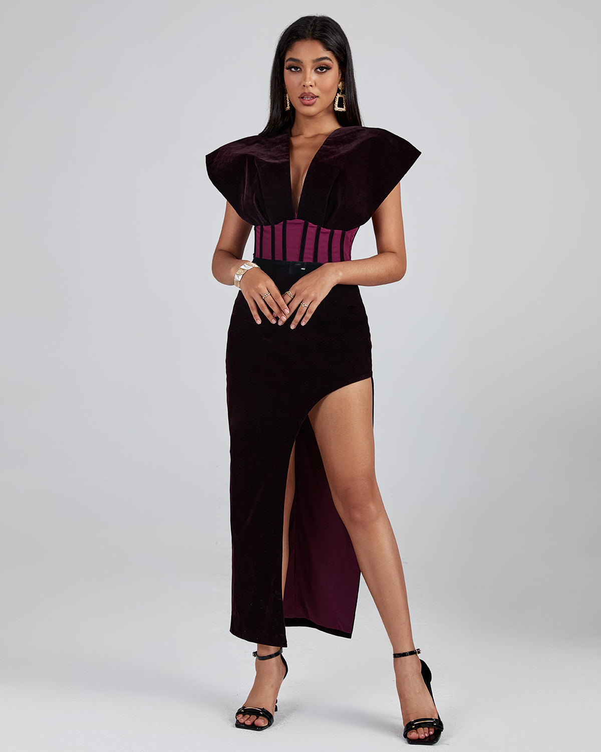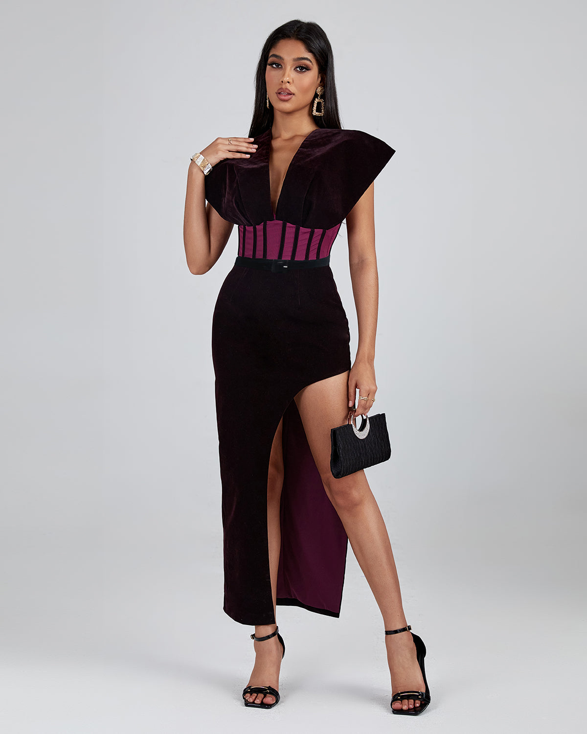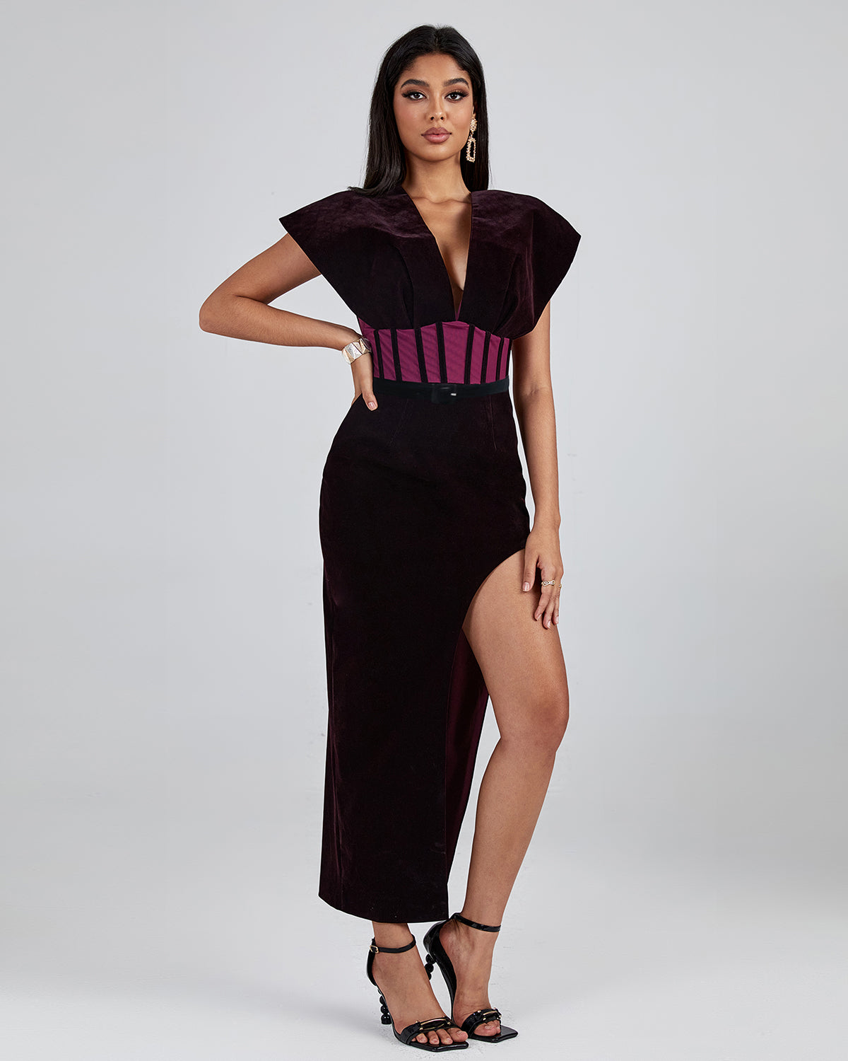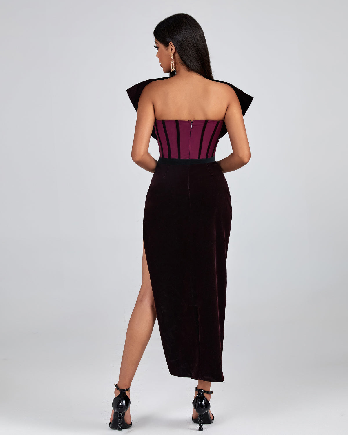 Purple Velvet Backless Dress