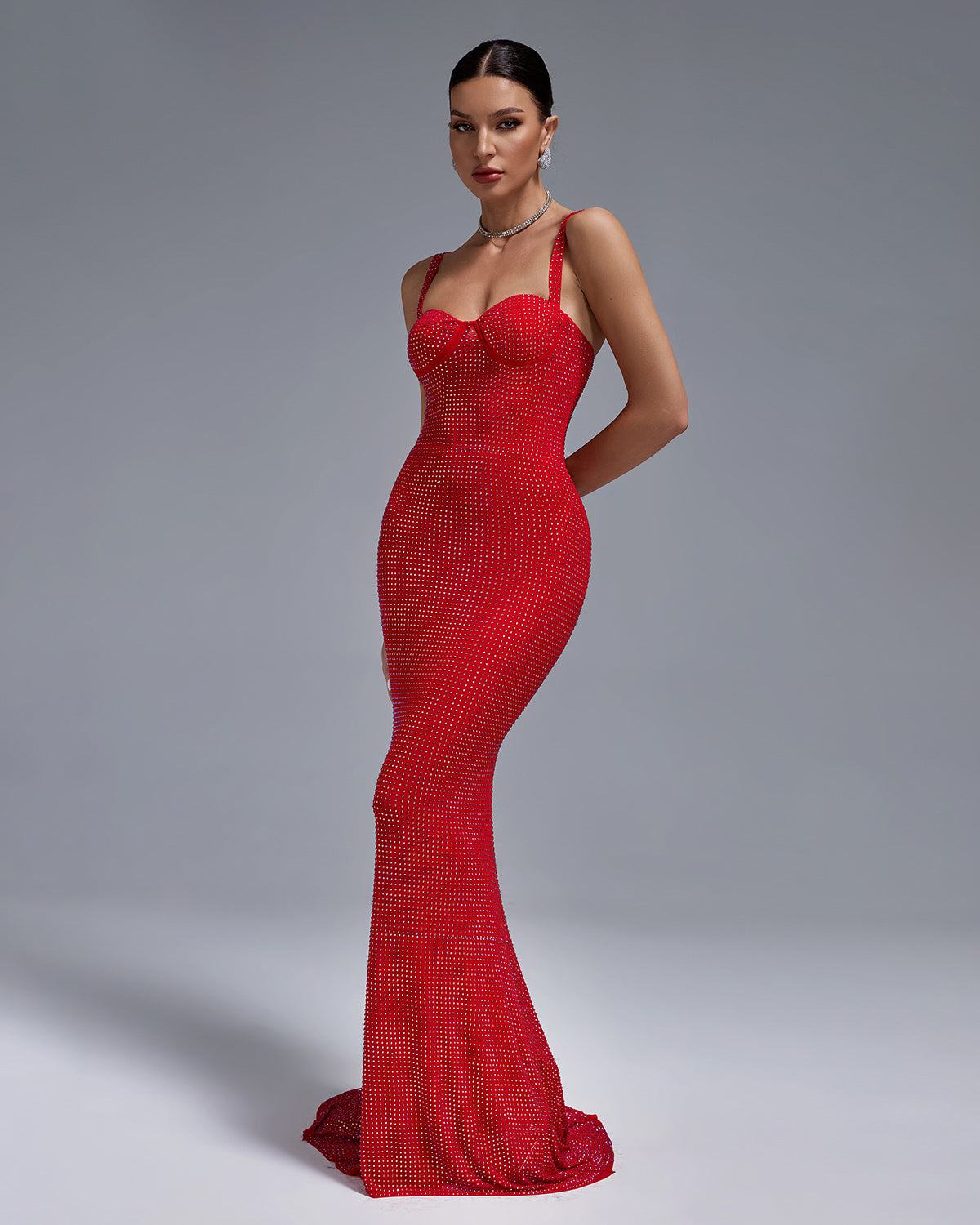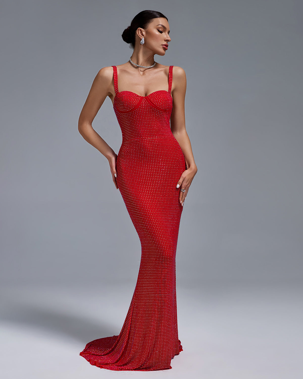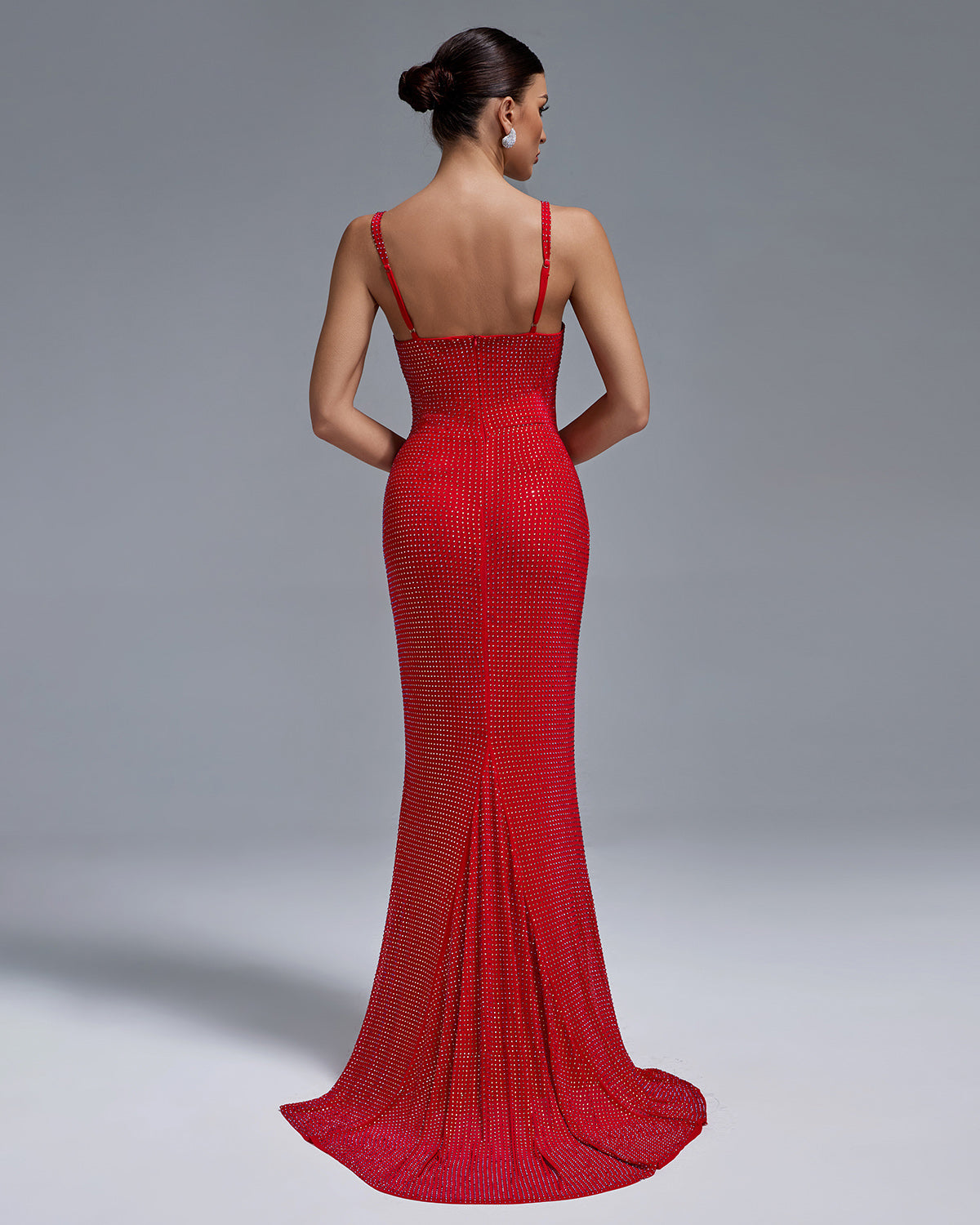 Make a statement at any event with our Rivet-Embellished Mermaid Evening Dress. Featuring intricate rivet detailing, this dress will elevate your style and make you stand out from the crowd. Look and feel confident and glamorous in this stunning piece. Perfect for formal occasions, weddings, and more.