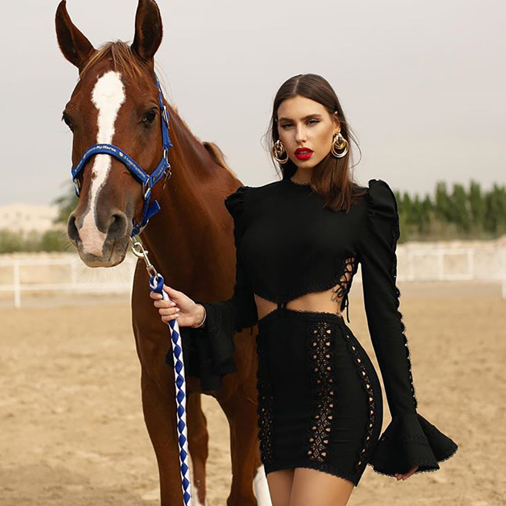 Mini robe bandage découpée à manches longues et col rond PP21108