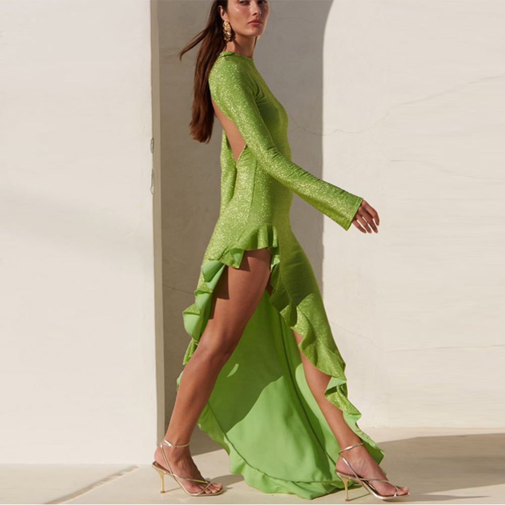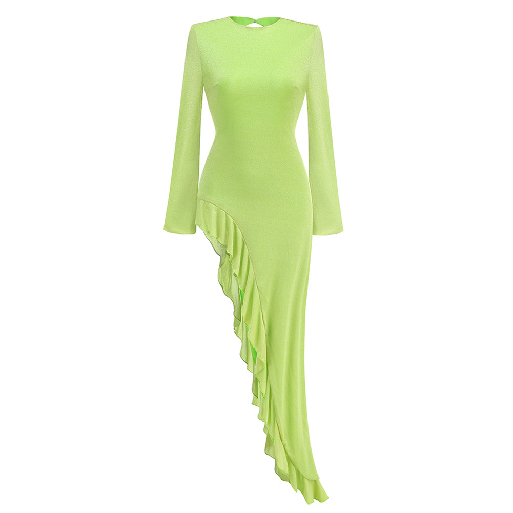 Round Neck Long Sleeve Irregular Maxi Dress KLYF1292