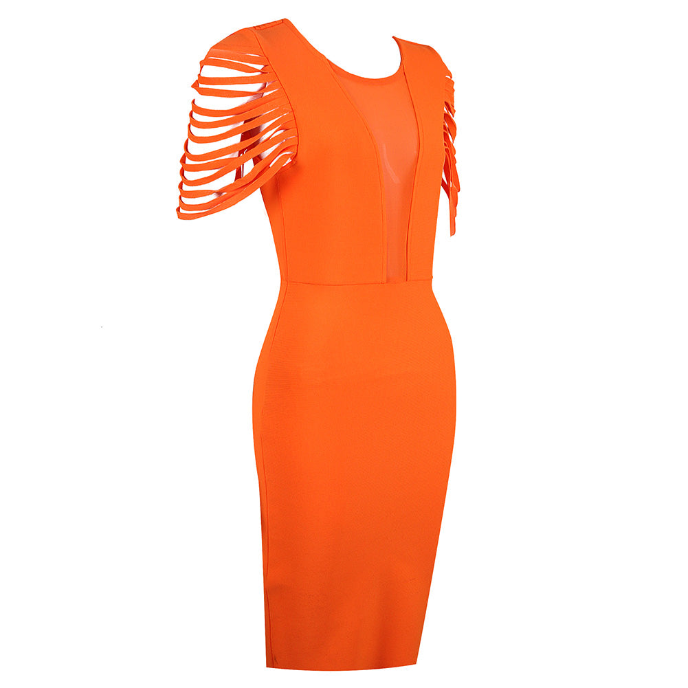 Robe bandage mi-longue découpée à manches courtes et col rond