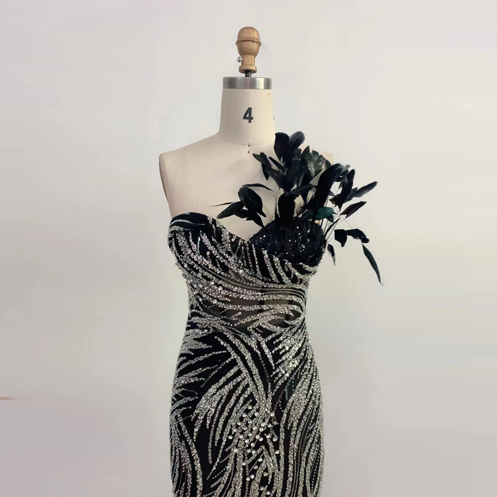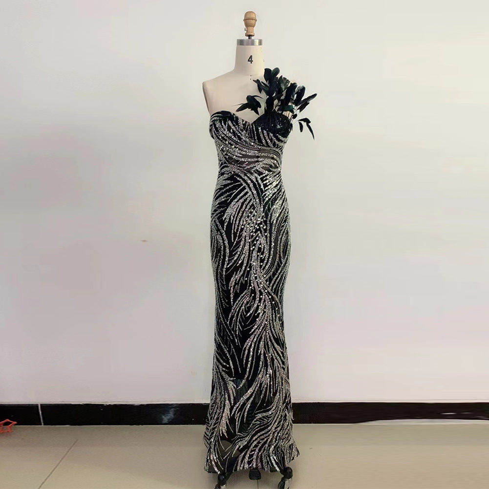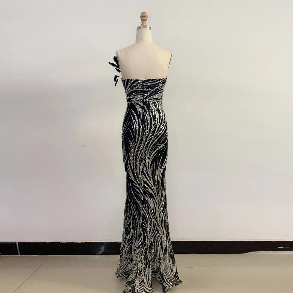 Flaunt your figure and look ravishing in this luxurious strapless maxi dress. The flattering feather accents add a hint of grace and elegance that will turn heads at any event. The sleeveless bodice and bodycon fit highlight your curves just right for a look that radiates femininity and sophistication.