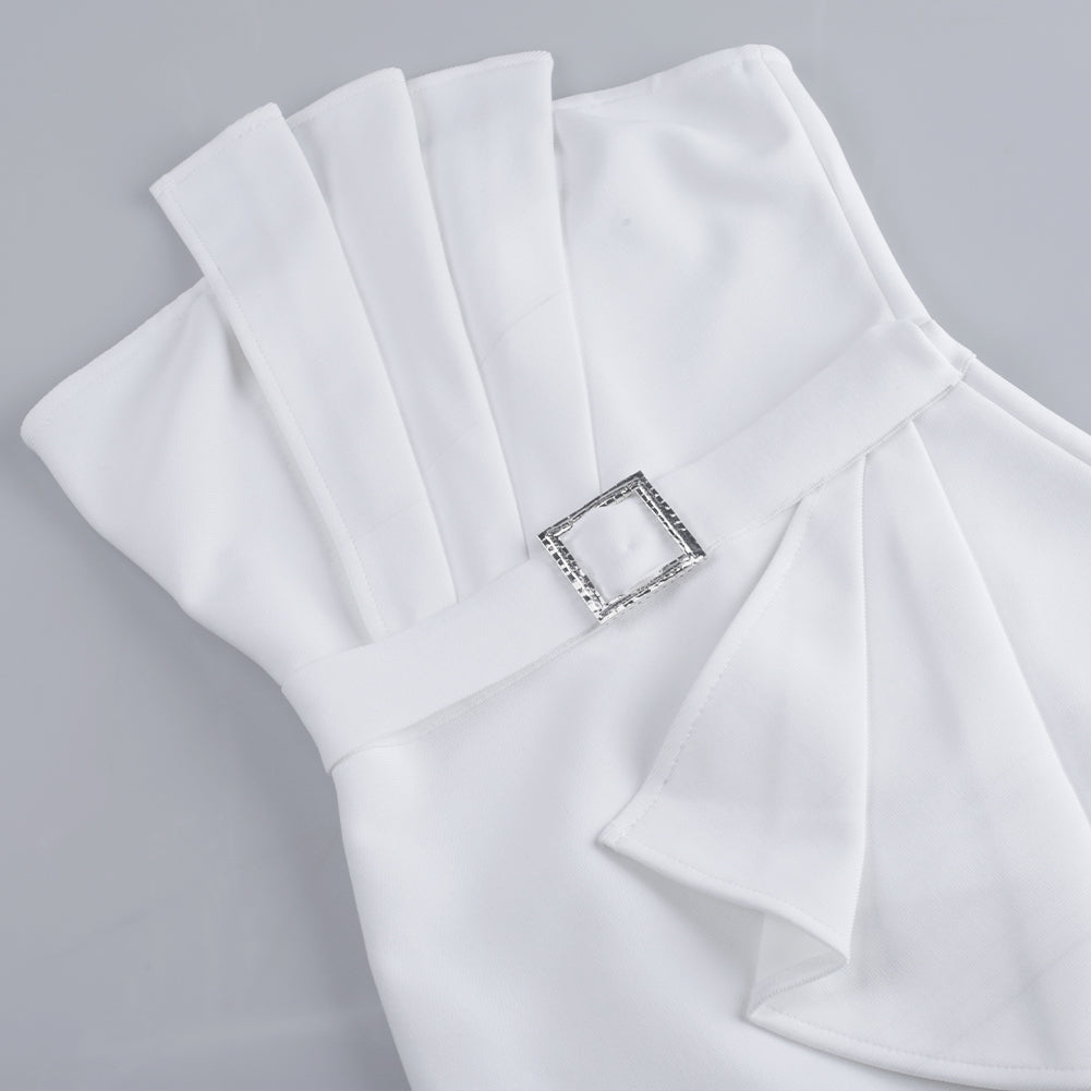 Robe bandage mi-longue sans manches à volants PS21618