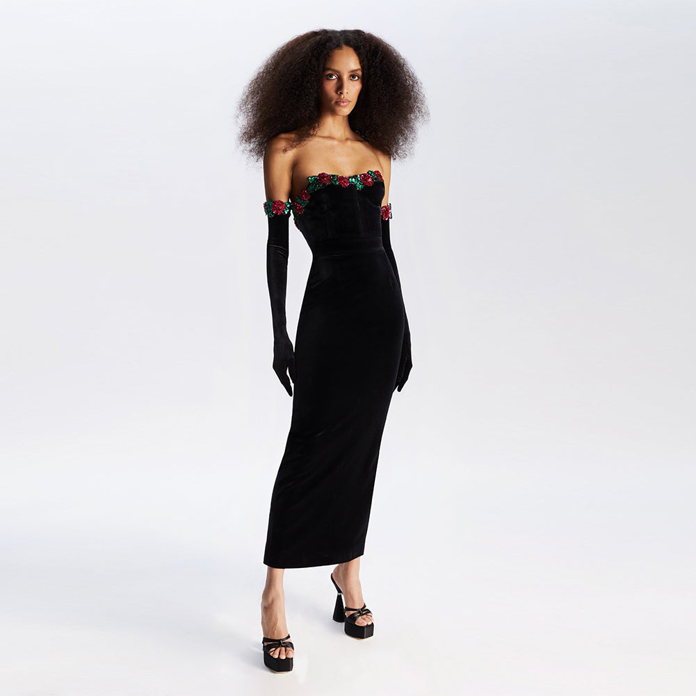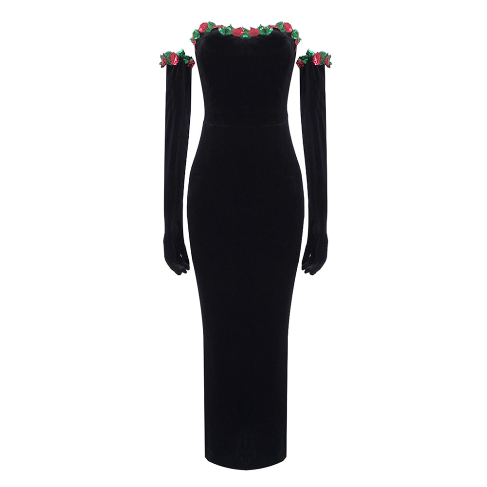 Strapless Sleeveless Sequins Midi Dress BD2492