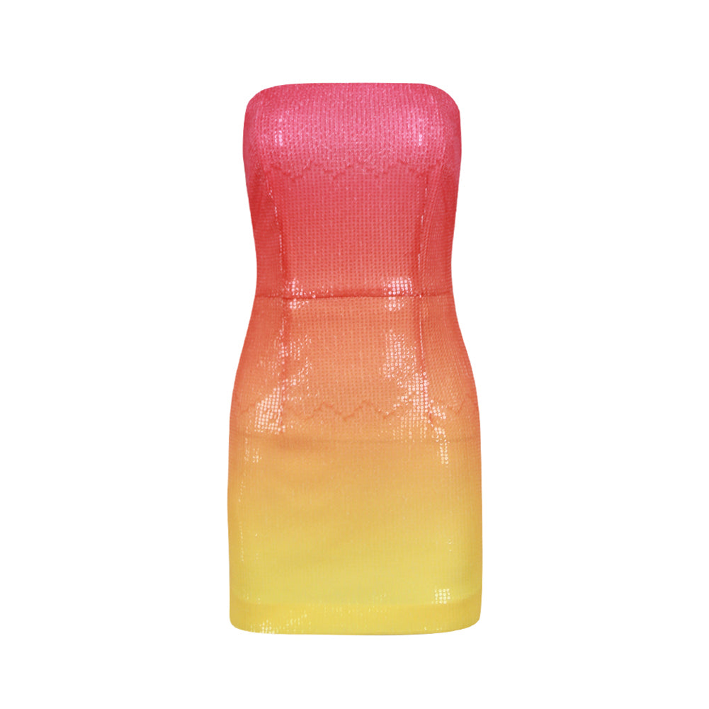 Revel in the immaculate craftsmanship and luxurious detail of our Strapless Sleeveless Sequins Mini Bodycon Dress, HL9378. This timeless piece showcases a stunning mini bodycon silhouette encrusted with an opulent sequins pattern. Its strapless and sleeveless design makes it a classic staple for any sophisticated wardrobe.