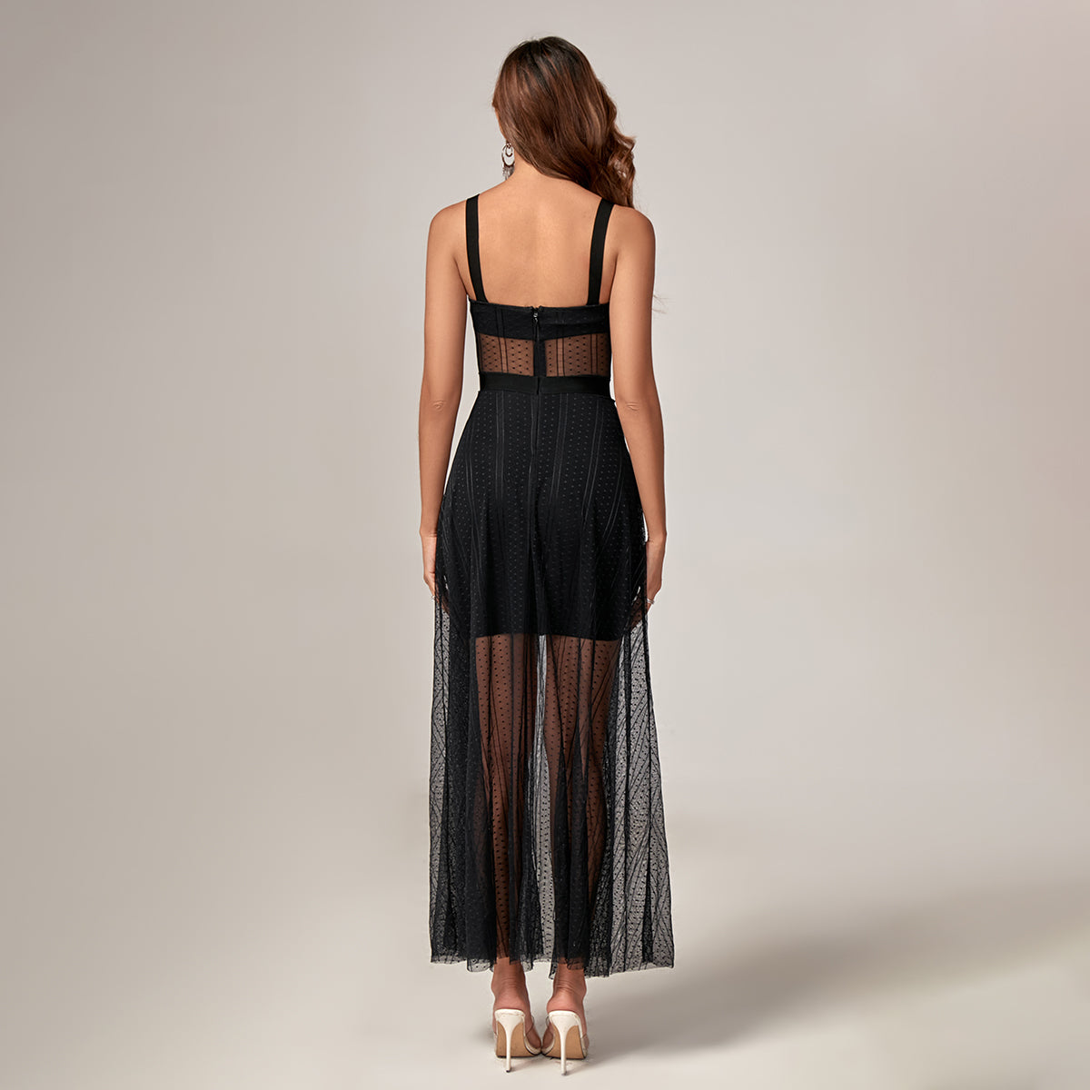 Robe longue en maille à pois et bretelles