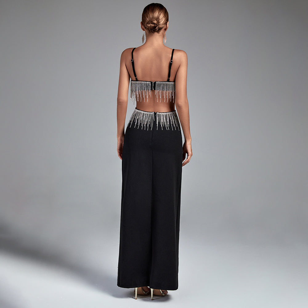 Robe moulante maxi à bretelles et chaîne de forage sans manches