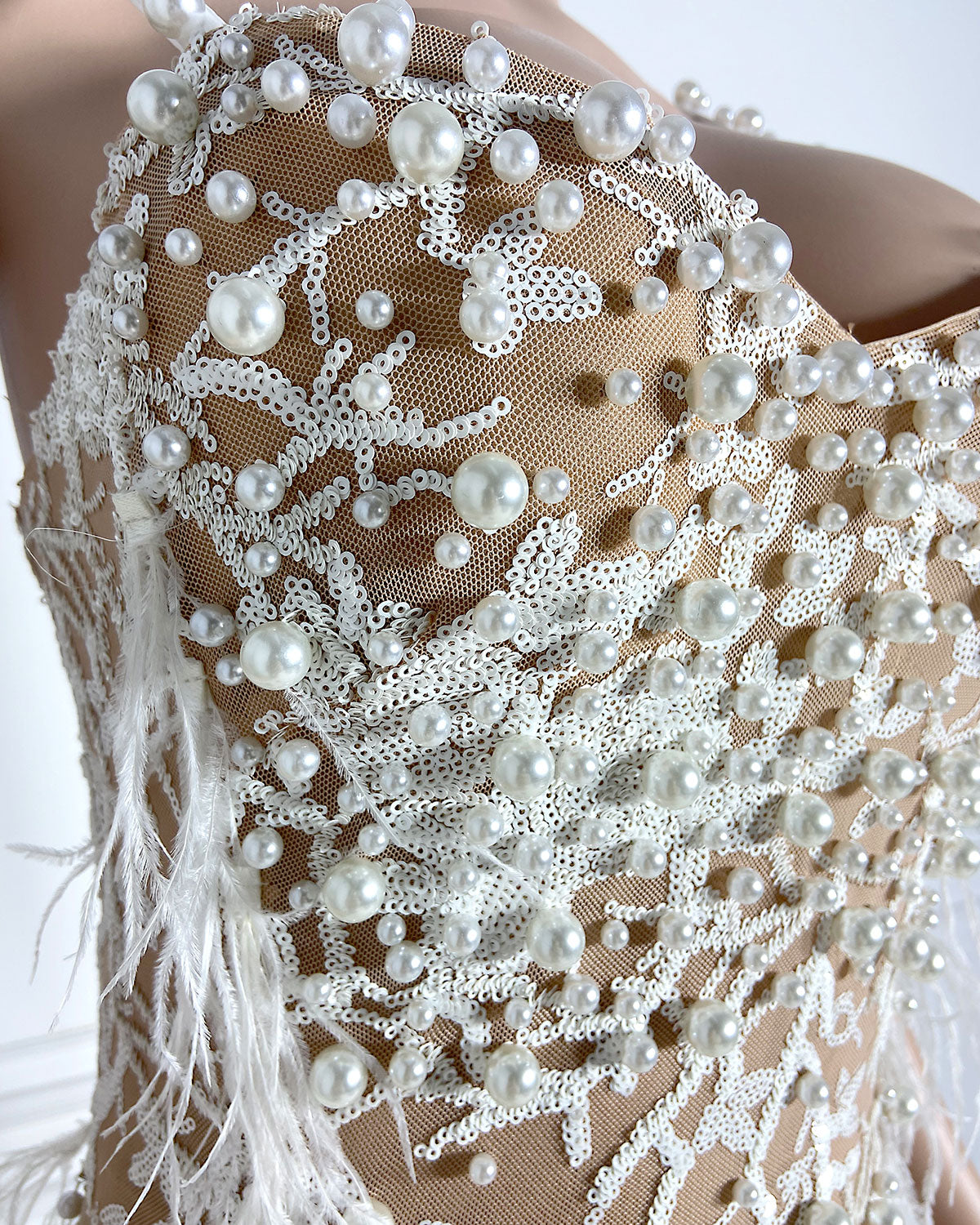 Robe moulante maxi plumes sans manches à bretelles HT2973