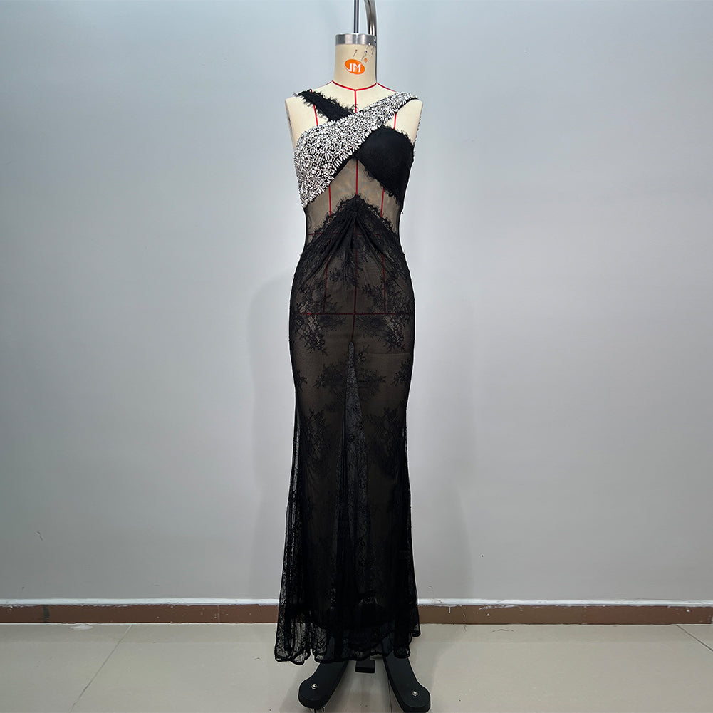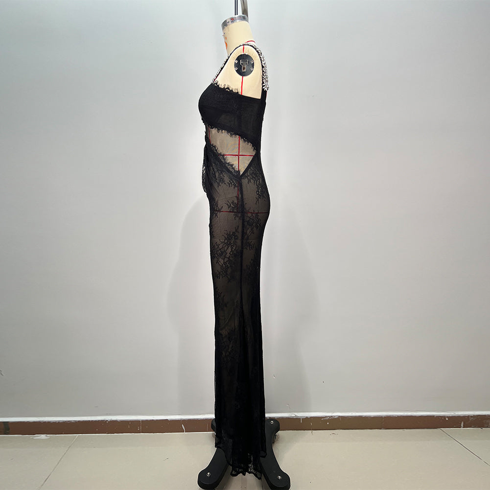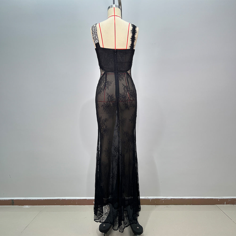 Strappy Sleeveless Lace Maxi Bodycon Dress HT12021