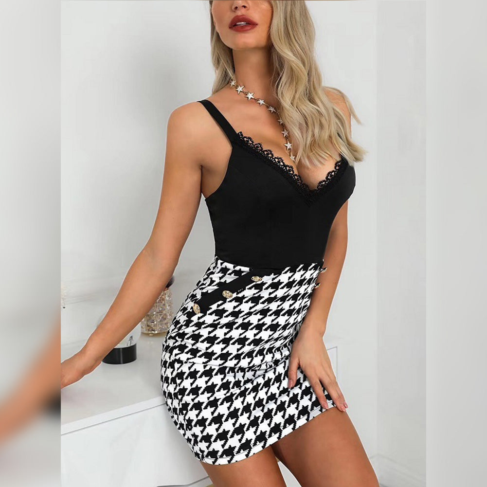 Mini robe bandage à carreaux sans manches à bretelles PF091409