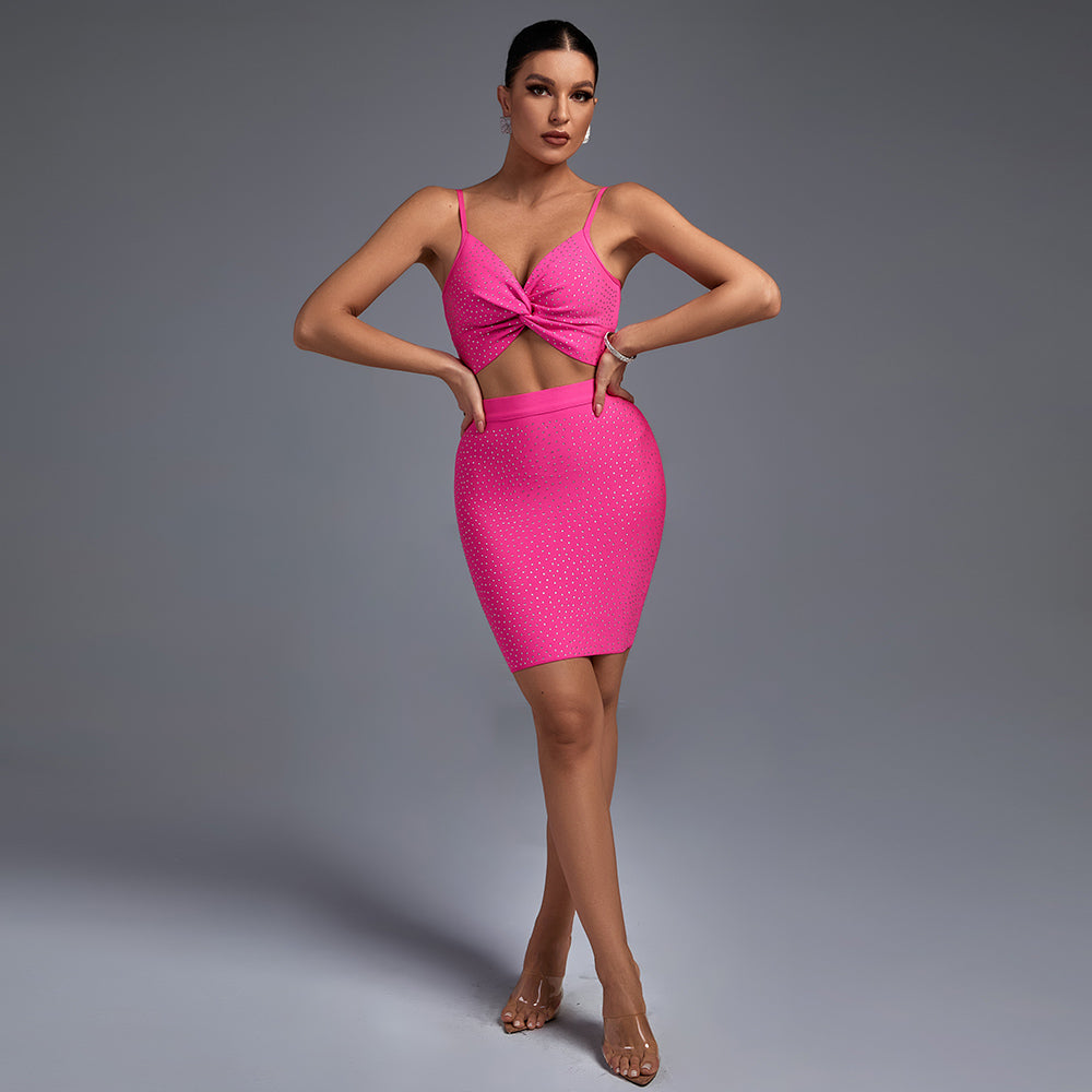 Ensemble de mini bandages à strass sans manches Rose Strappy