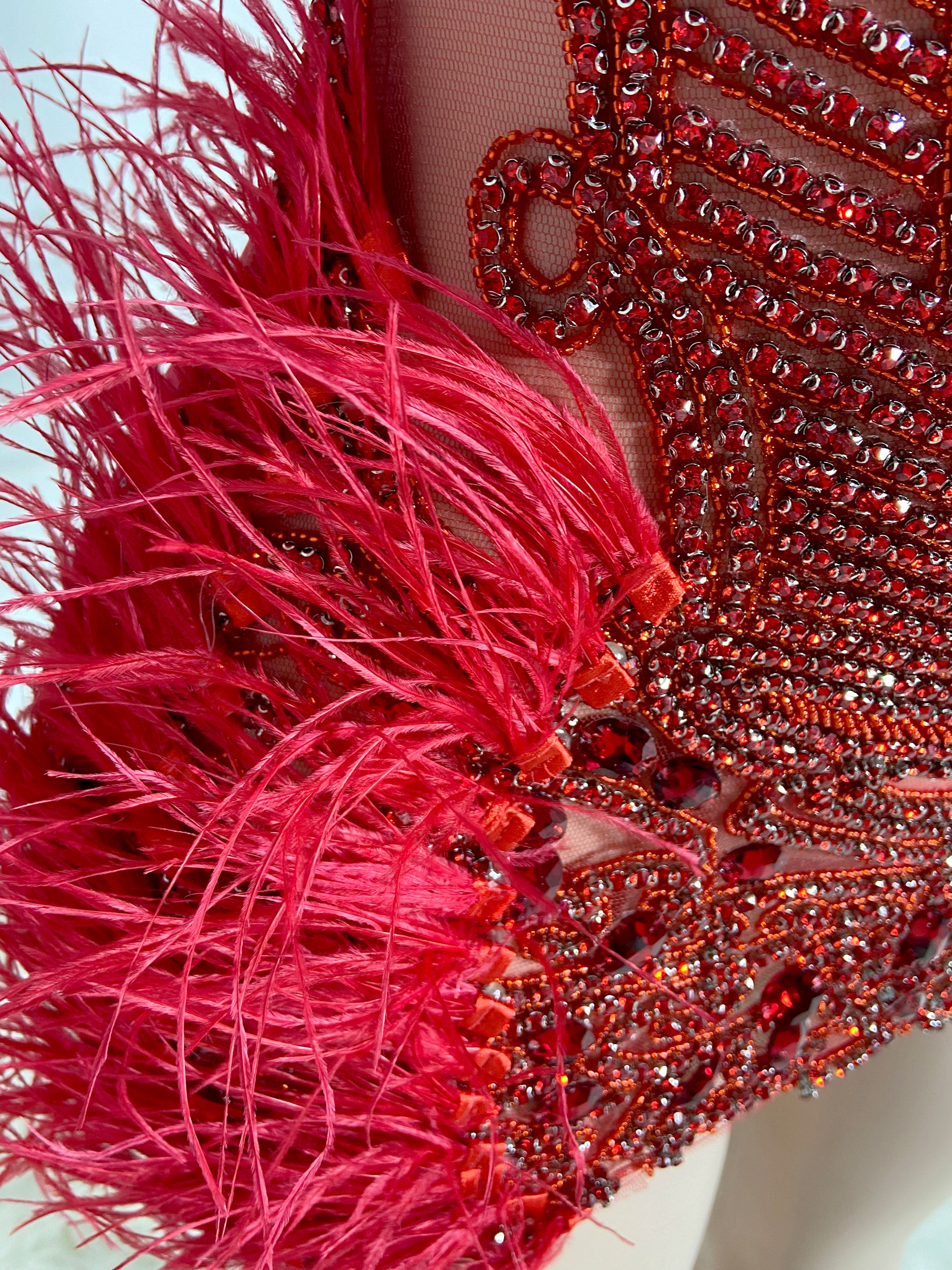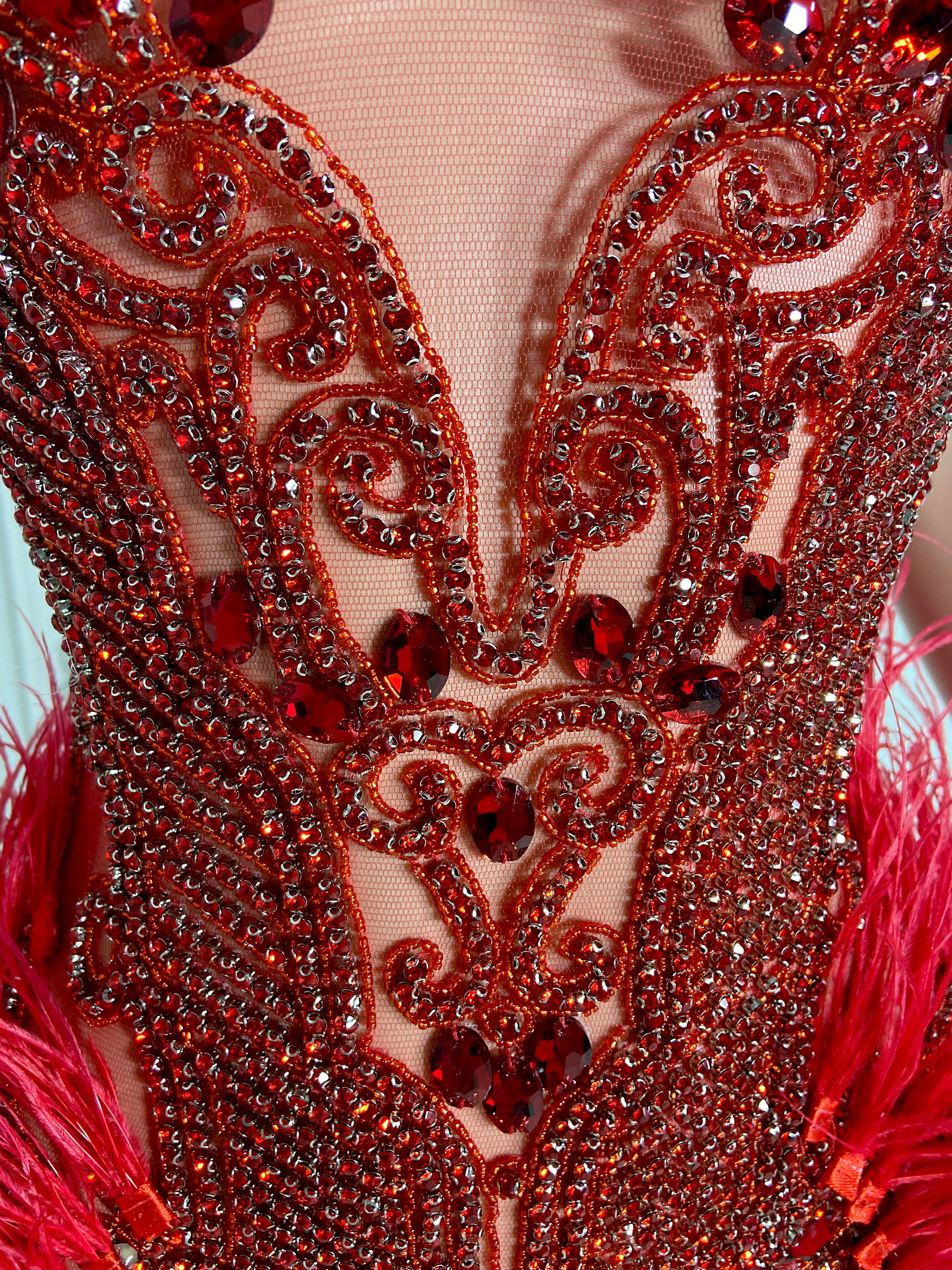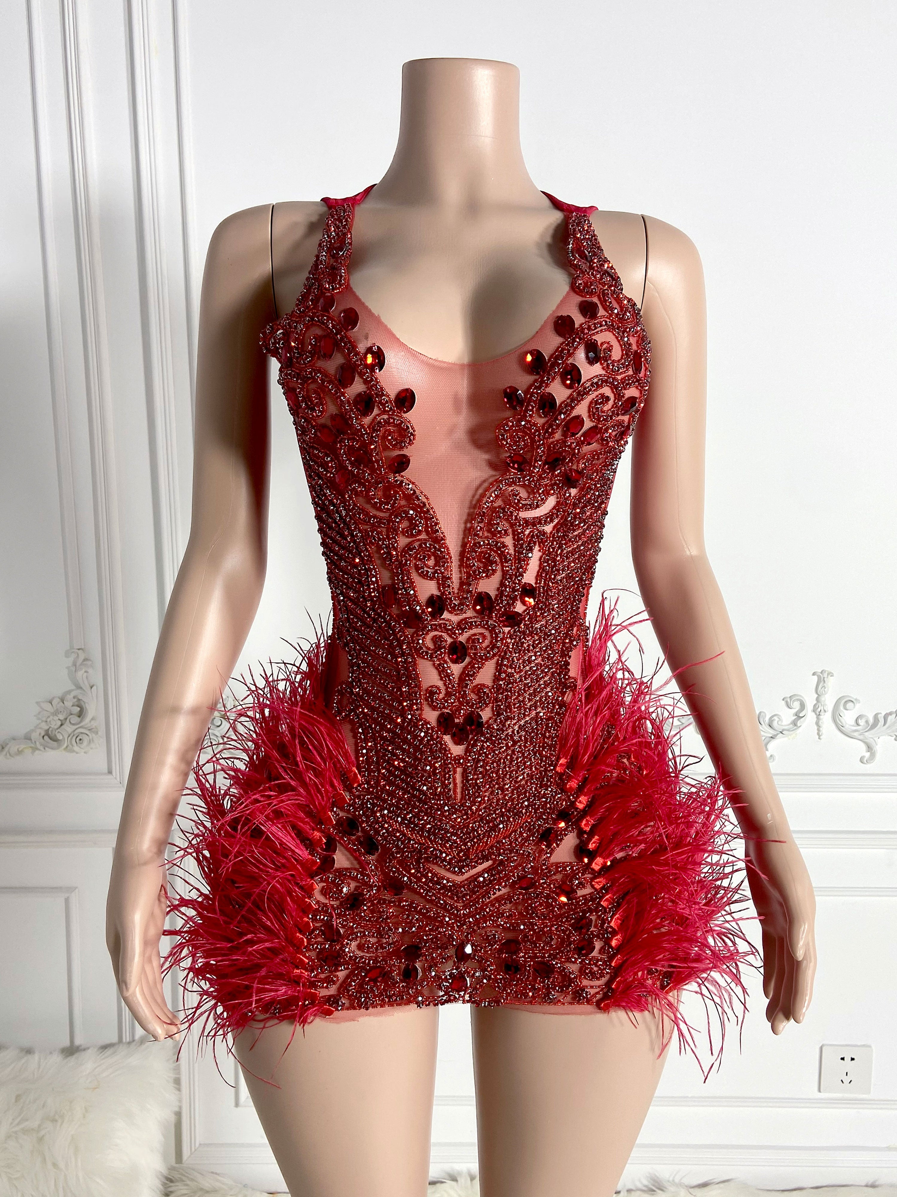 Vivid Red Stunner Feather Mini Dress