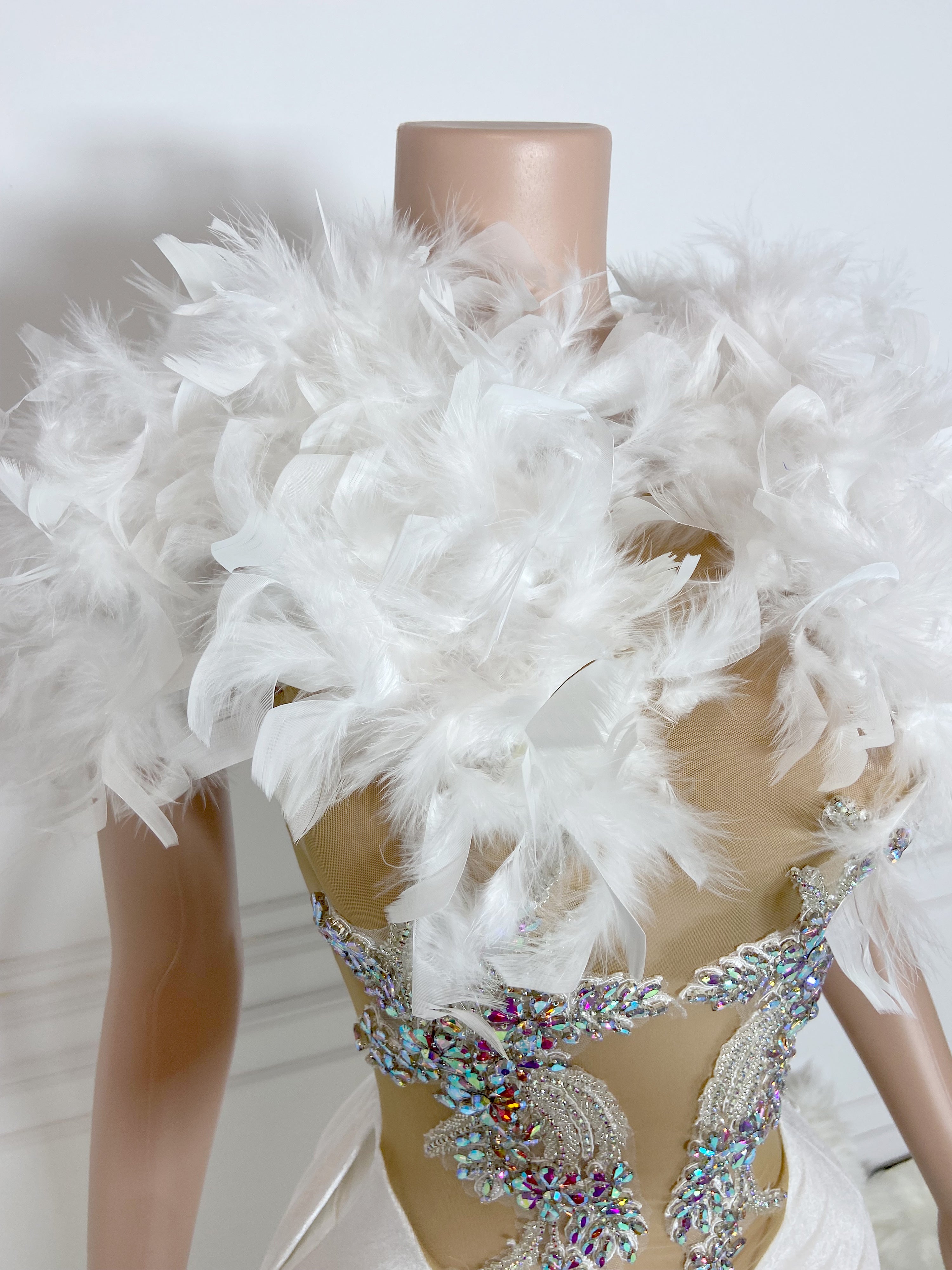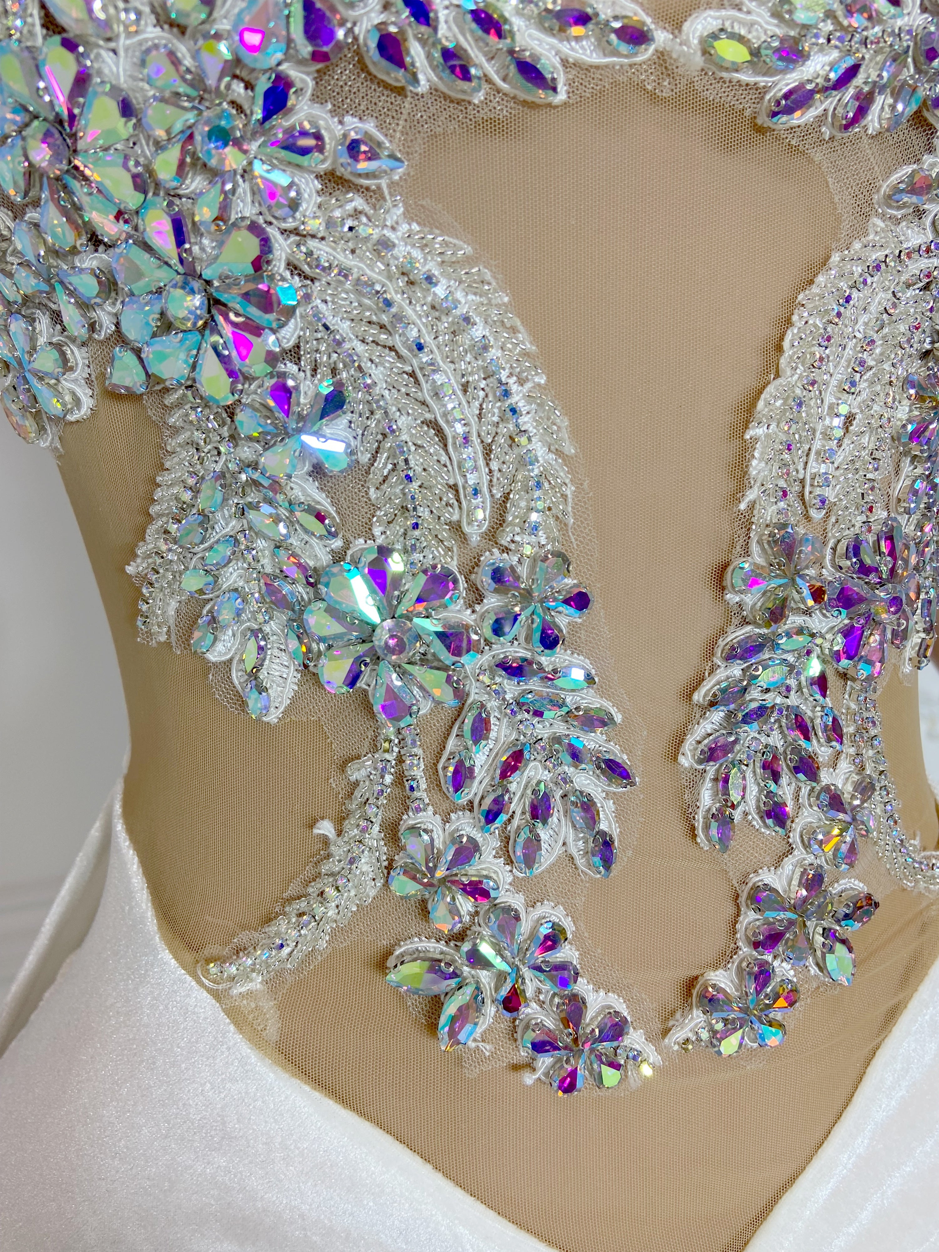 White Rhinestone Collar Sleeveless Rhinestone Mini Dress