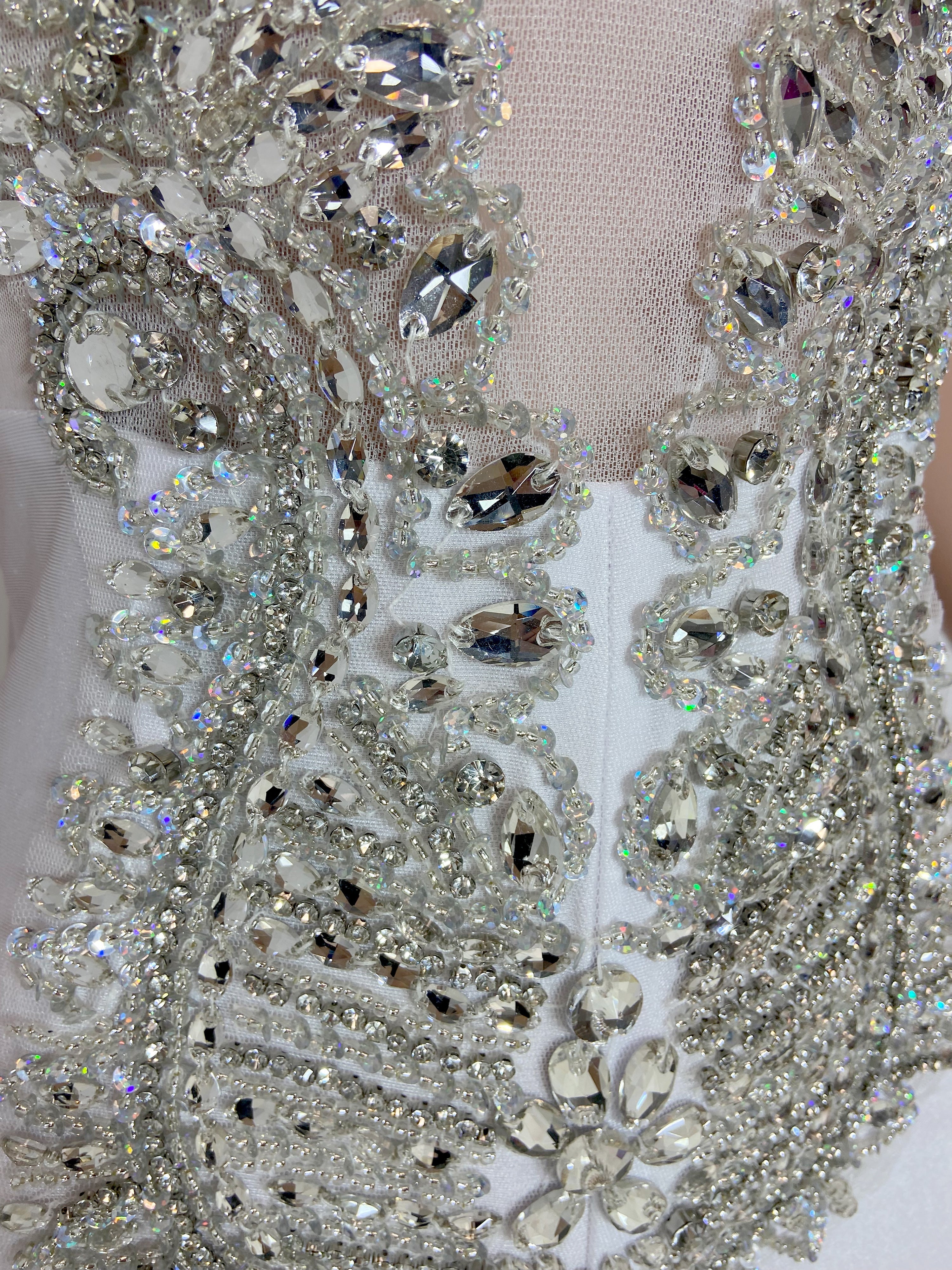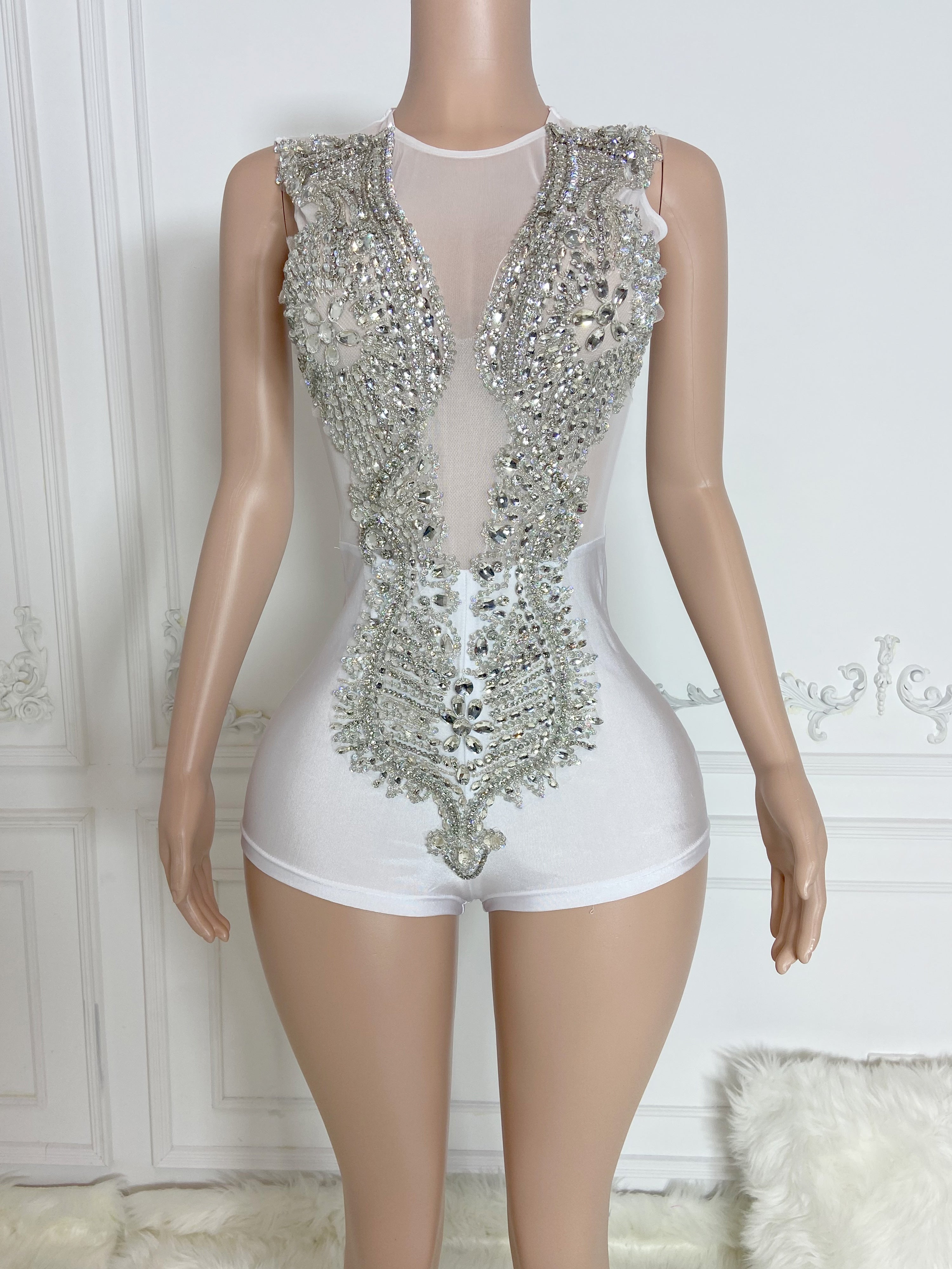 White Round Neck Sleeveless Mini Playsuit with Shorts Bottom