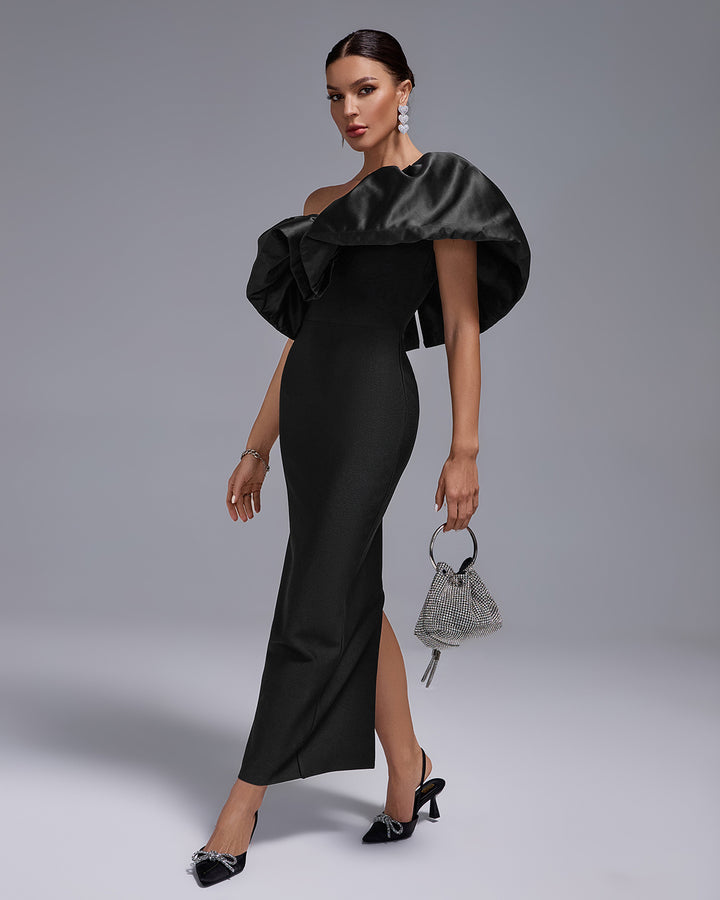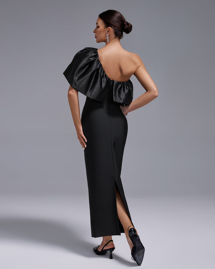 One Shoulder Ruffle Bandage Long Dress