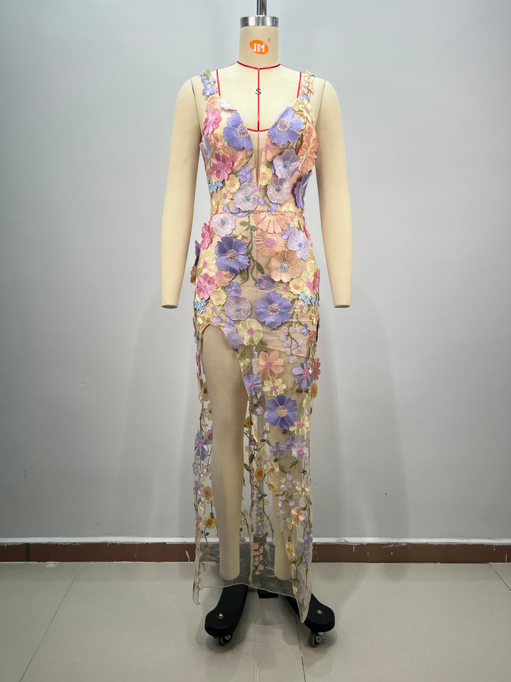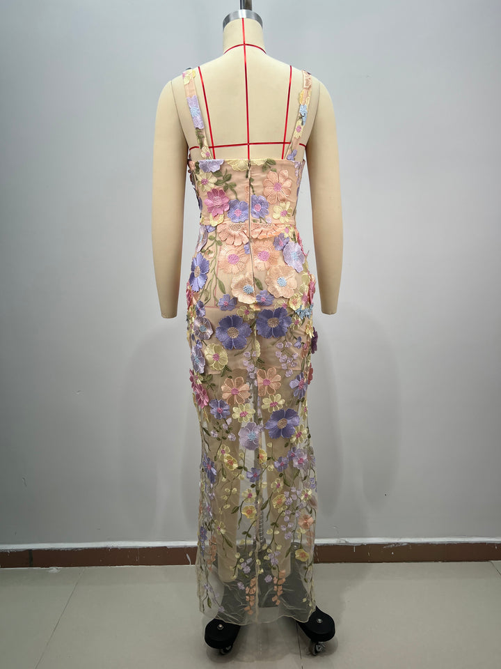 Floral-Embellished Maxi Bodycon Dress